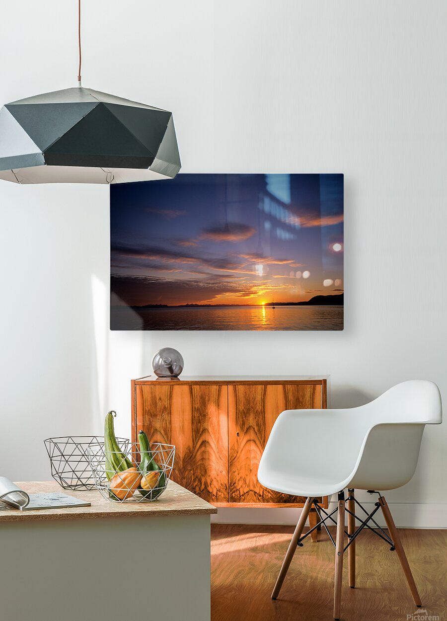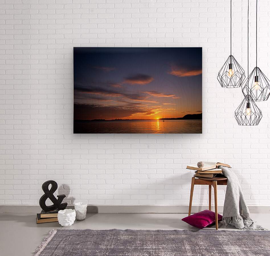 ABOUT THIS ARTWORK: MIDNIGHT SUN SETS OVER WATER IN LONGYEARBYEN NORWAY