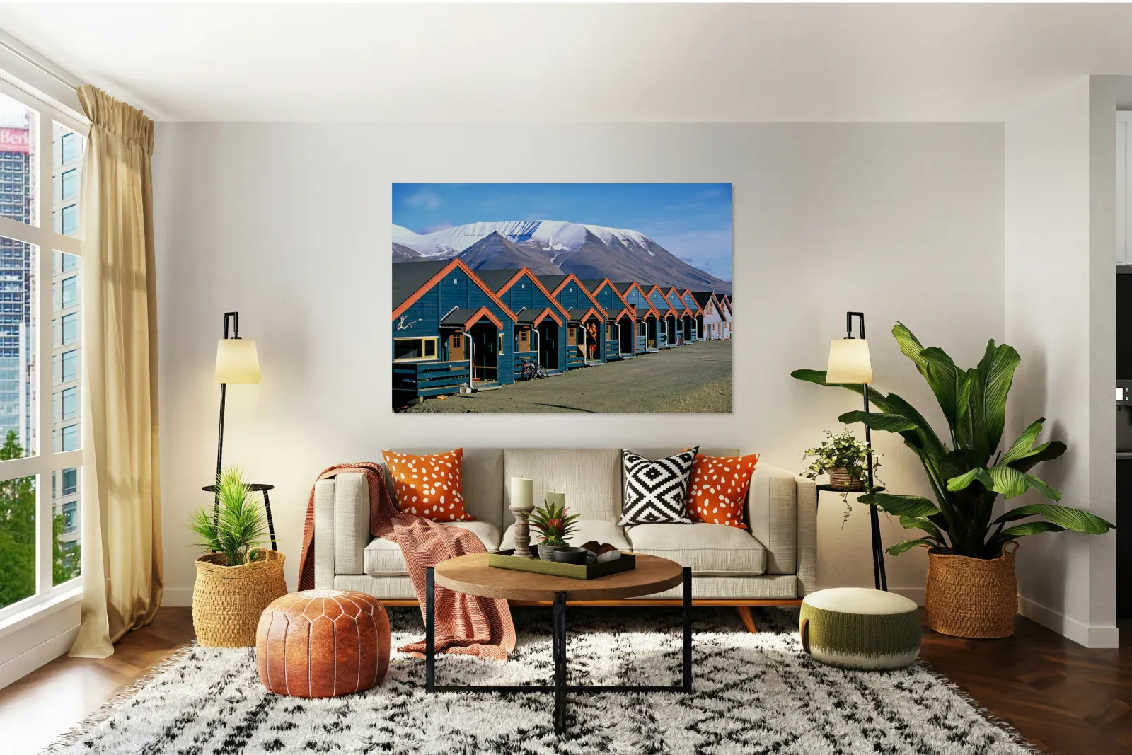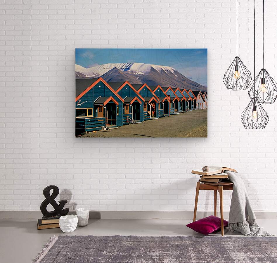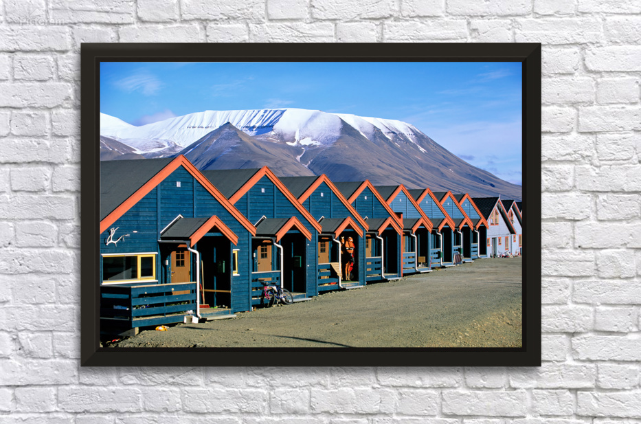 "Colorful houses line the street in Longyearbyen Svalbard" in a framed print.