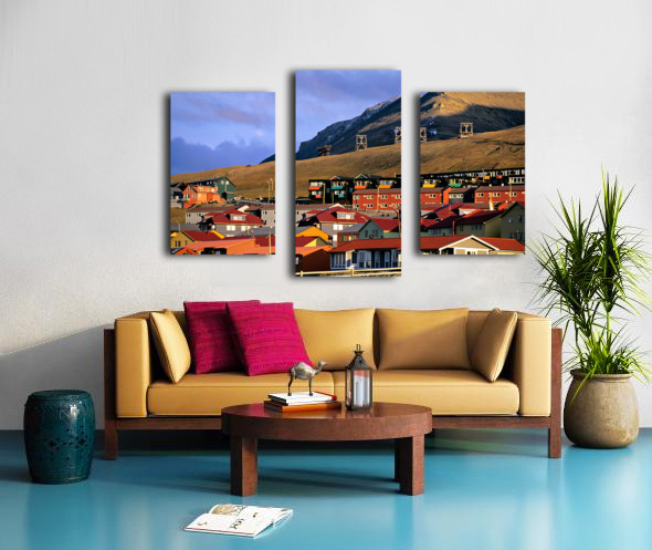 ABOUT THIS ARTWORK: COLORFUL BUILDINGS IN LONGYEARBYEN SVALBARD AT SUNSET