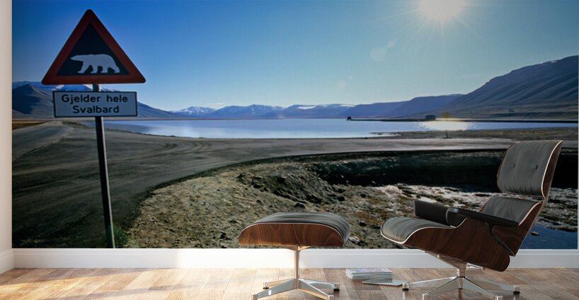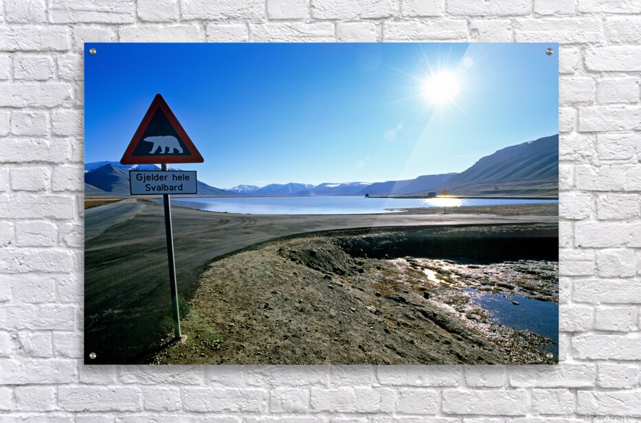 ABOUT THIS ARTWORK: WARNING SIGNS IN LONGYEARBYEN SVALBARD ARCHIPELAGO NORWAY