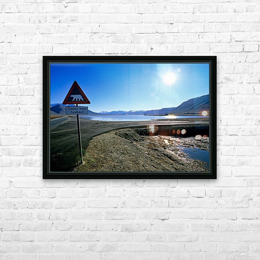 Warning signs in Longyearbyen Svalbard Archipelago Norway Picture Frame Printing