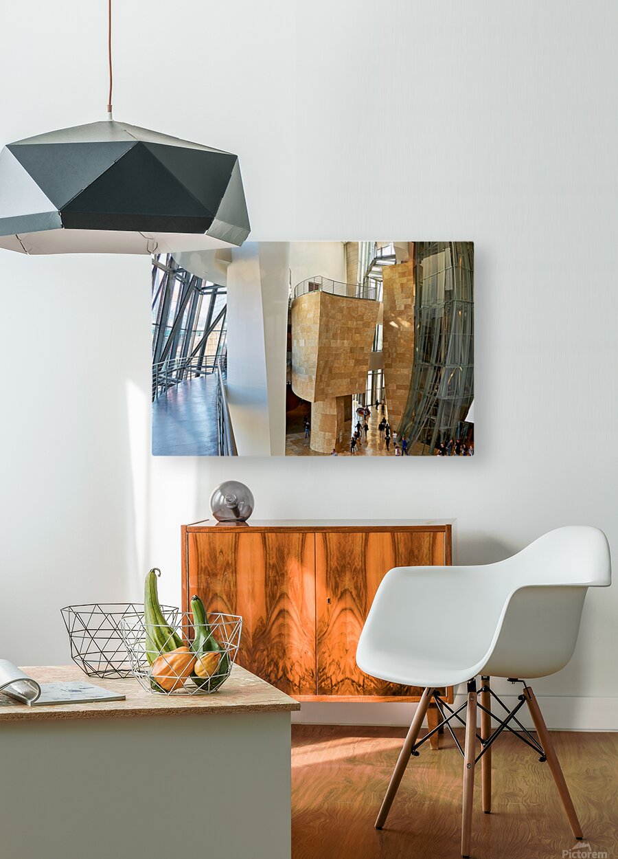 Inside Guggenheim Museum in Bilbao Spain with visitors walking Marco Brivio Puzzle printing