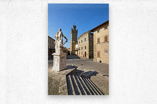 ABOUT THIS ARTWORK: PALAZZO DEI PRIORI AND STATUE IN AREZZO TUSCANY ITALY