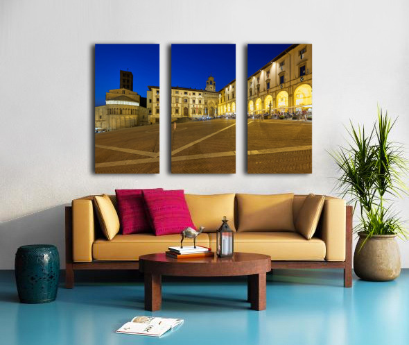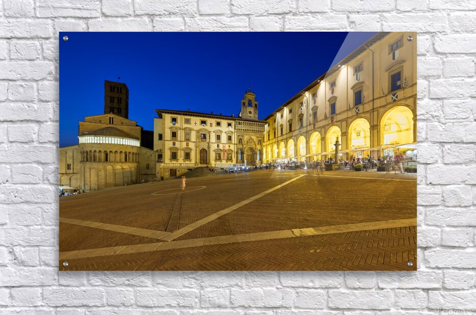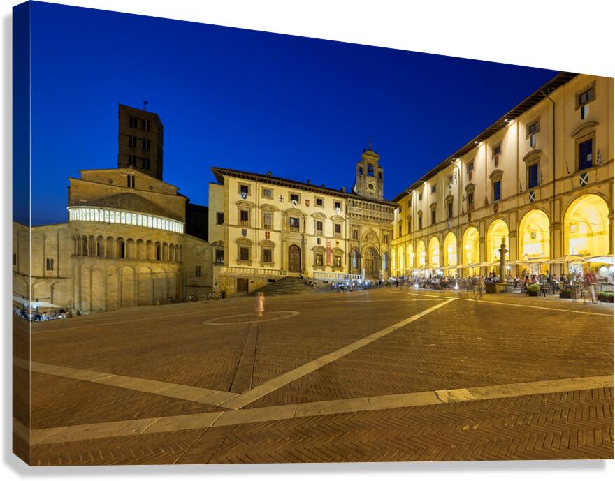 Get this artwork "Piazza Grande in Arezzo at sunset with glowing architecture" in a framed print.