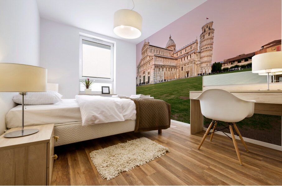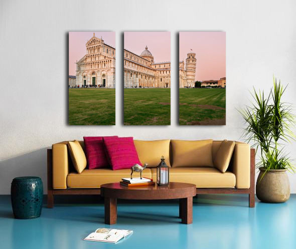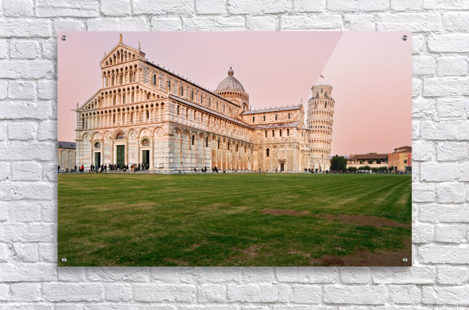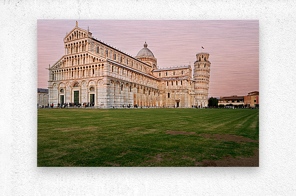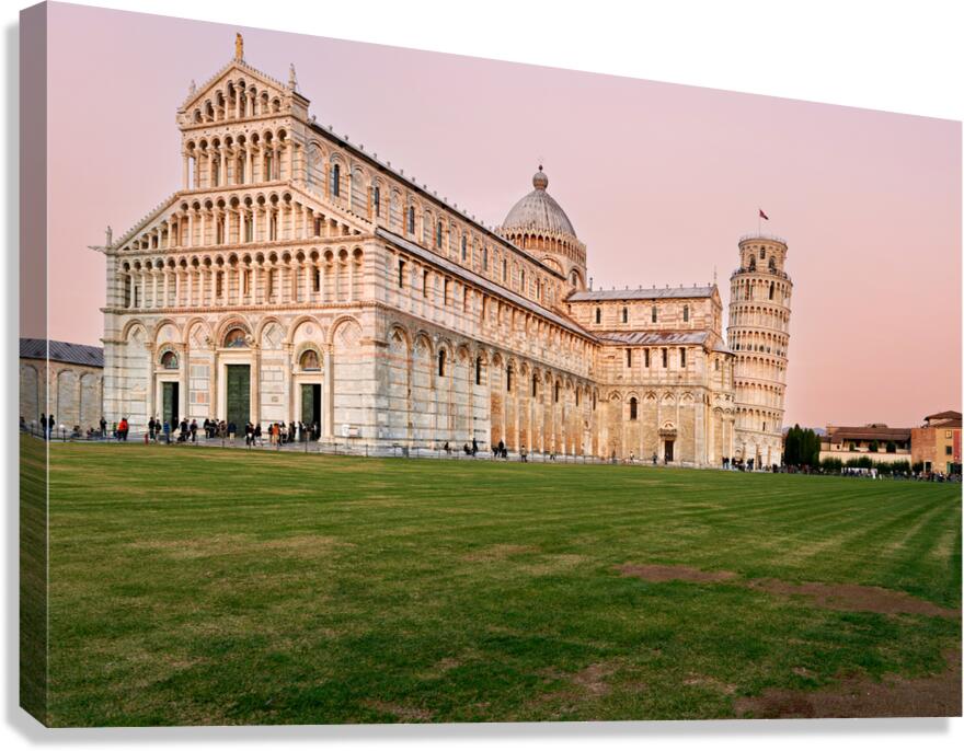 ABOUT THIS ARTWORK: SUNSET VIEW OF LEANING TOWER AND CATHEDRAL IN PISA TUSCANY
