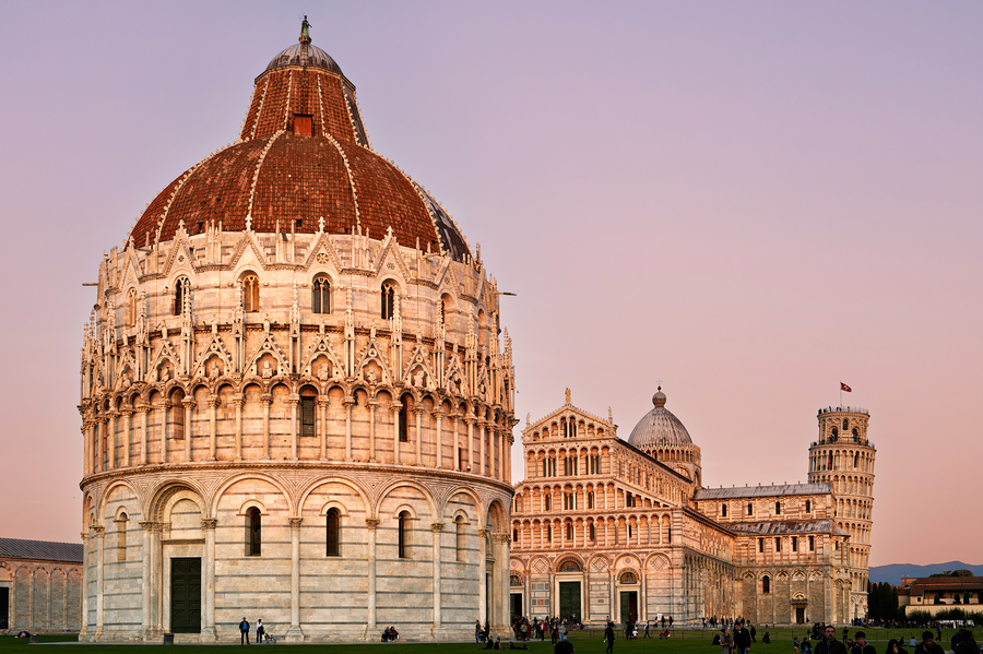 PISA TUSCANY LANDMARKS AT SUNSET IN SQUARE OF MIRACLES