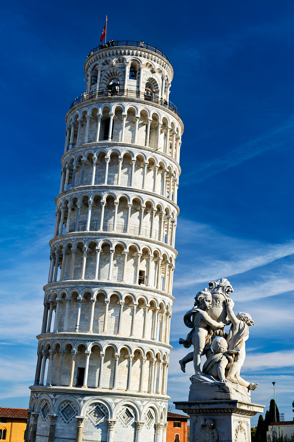 Inside the Church of San Michele in Borgo rows of benches face an altar. A statue of Mary stands near lit candles.