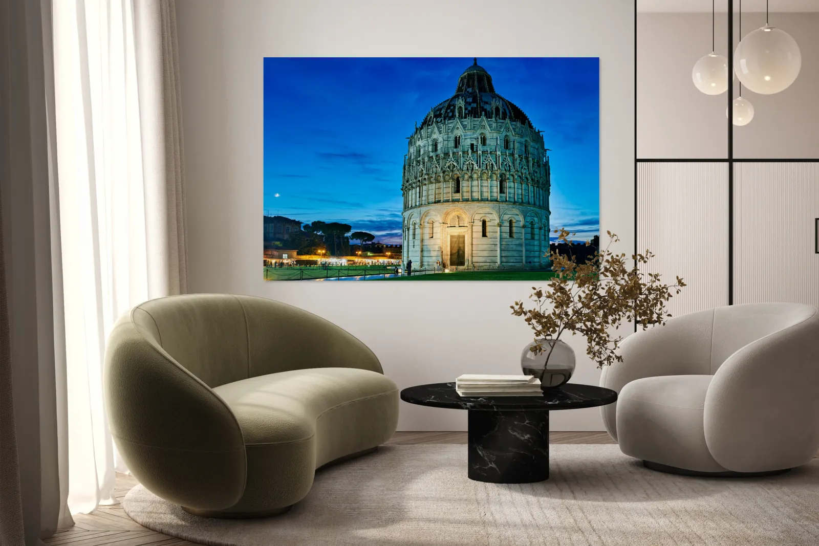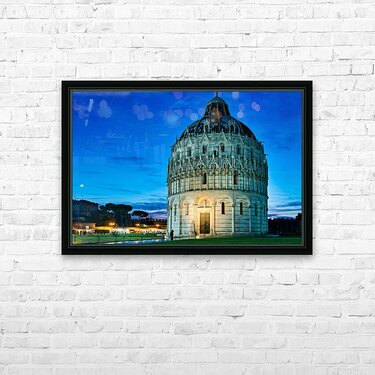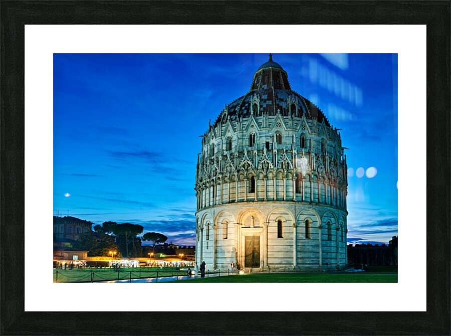 "Exploring the Baptistery at sunset in Pisa Tuscany Italy" in a framed print.