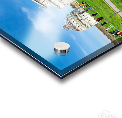 People walk in Piazza dei Miracoli admiring the Baptistry and Cathedral in Pisa. The sun shines on the historic buildings and green grass. Marco Brivio Puzzle printing