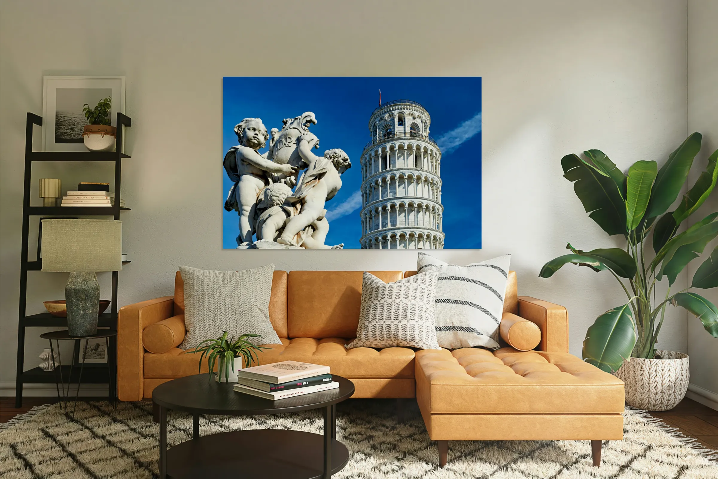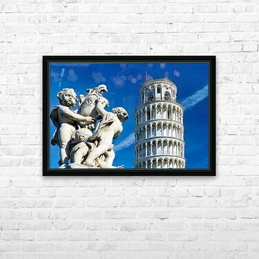 Leaning Tower and fountain in Piazza dei Miracoli in Pisa Picture Frame Printing