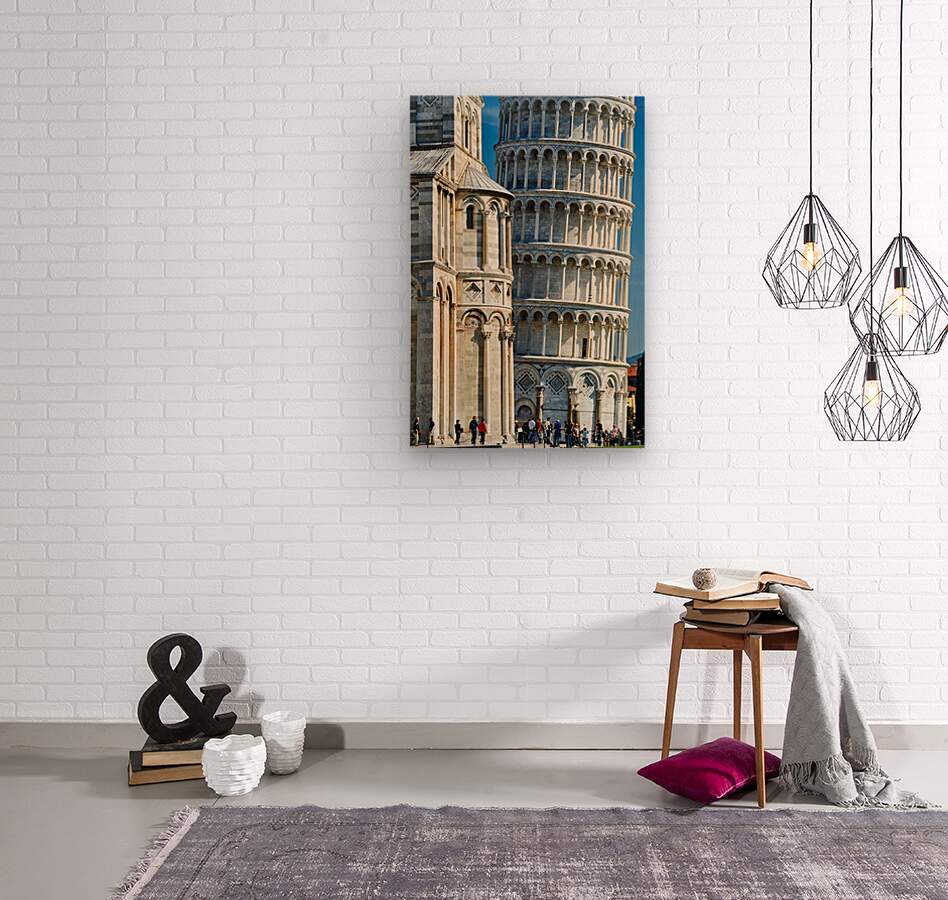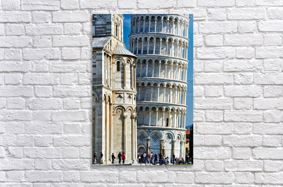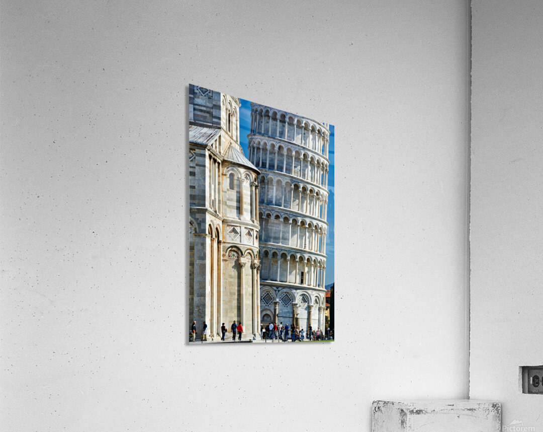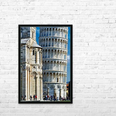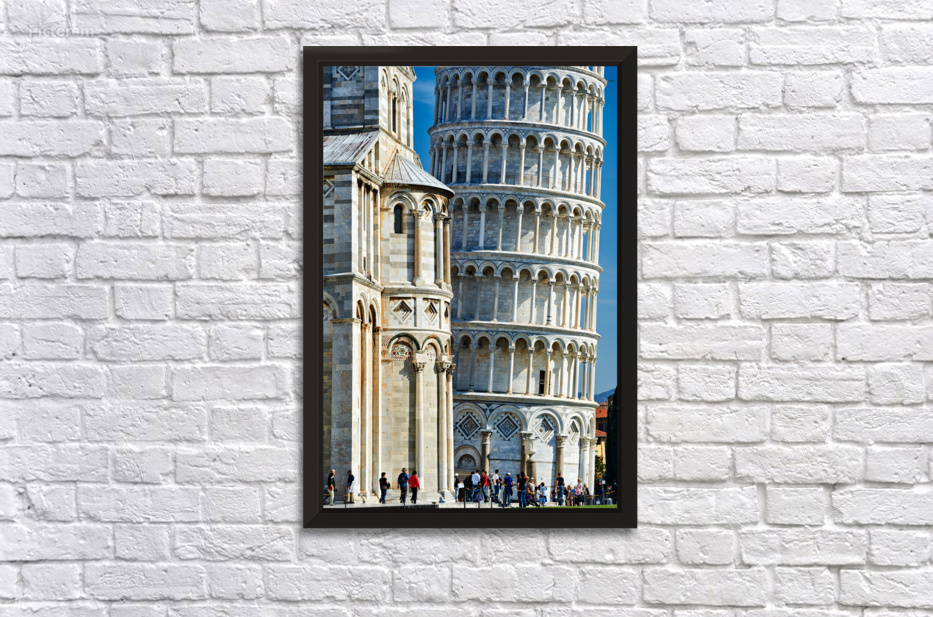 "Visit the leaning tower and cathedral in pisa italy" in a framed print.