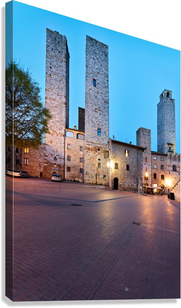 ABOUT THIS ARTWORK: PIAZZA DEL DUOMO IN SAN GIMIGNANO AT SUNSET IN TUSCANY ITALY