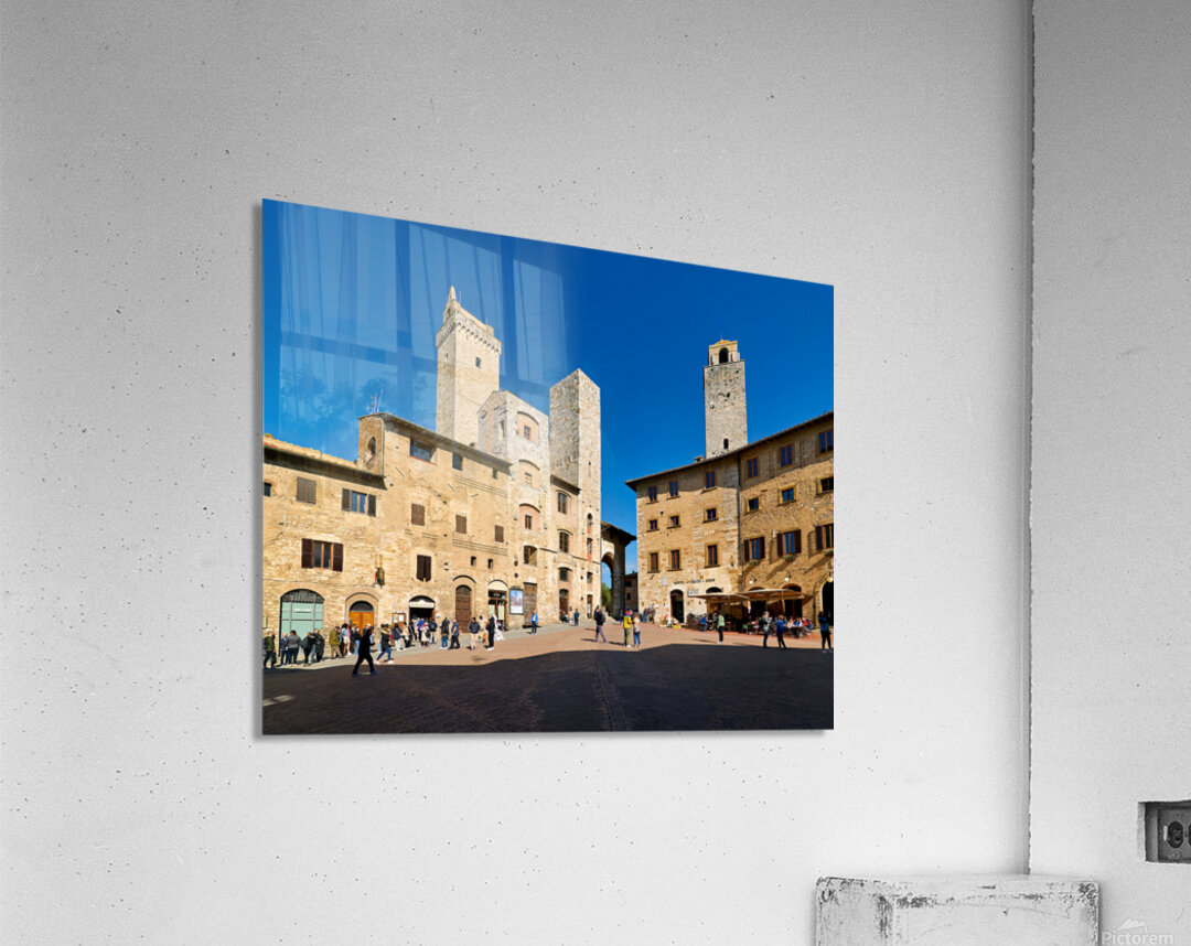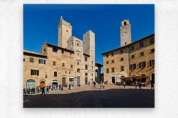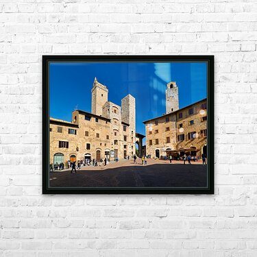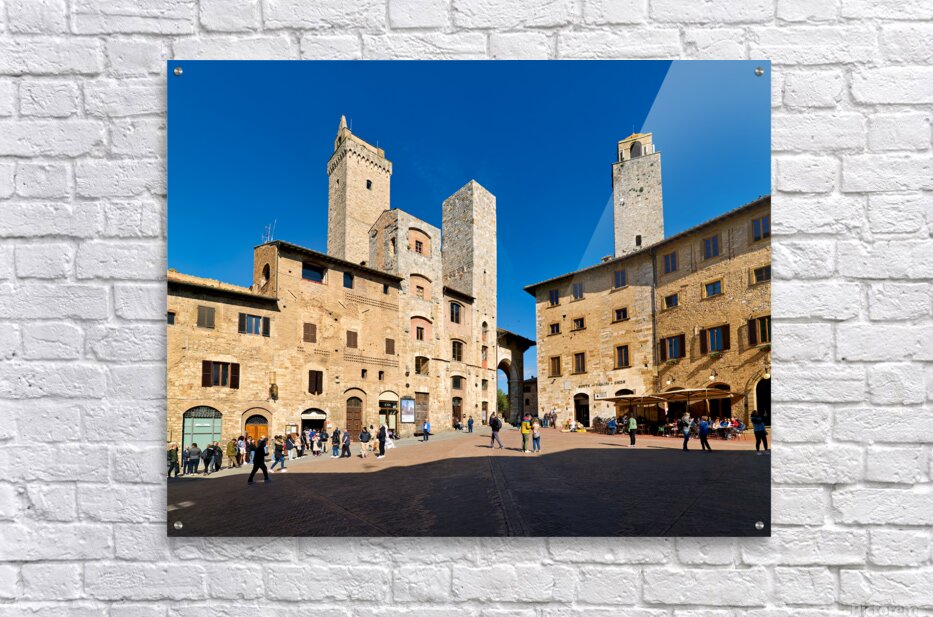 Visitors explore Piazza della Cisterna in San Gimignano Picture Frame Printing