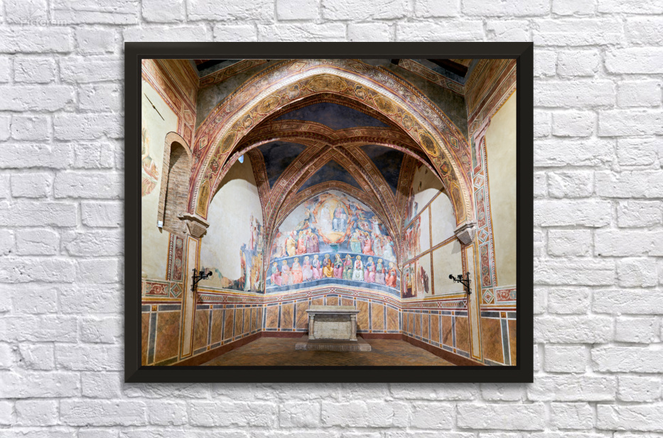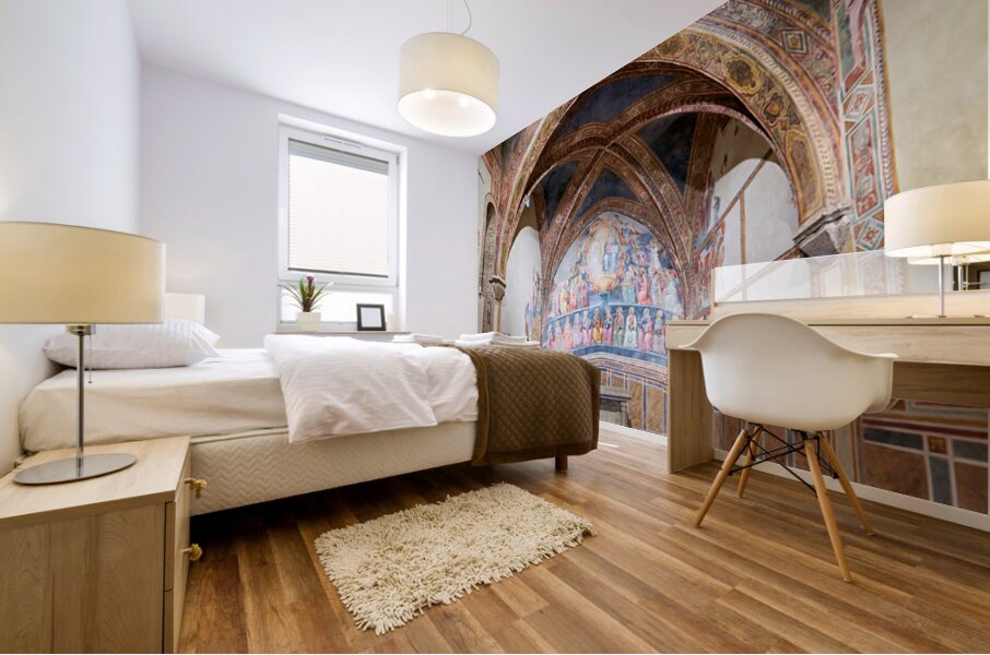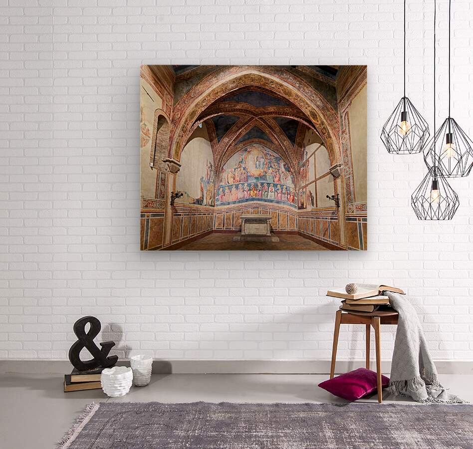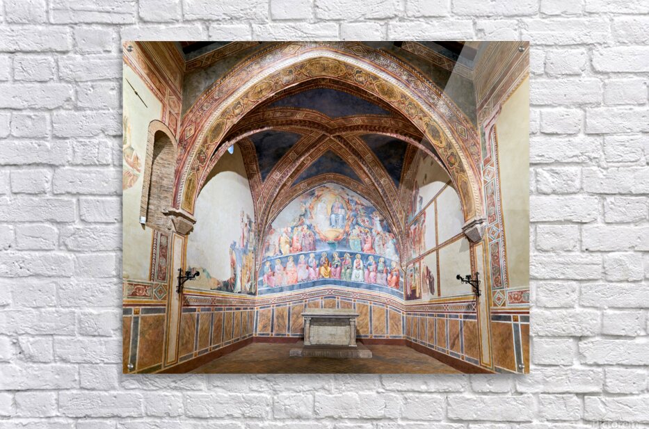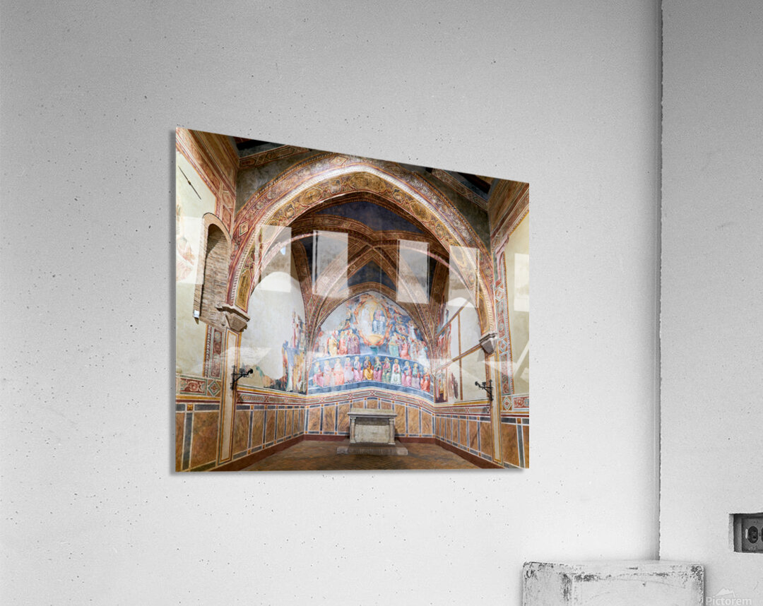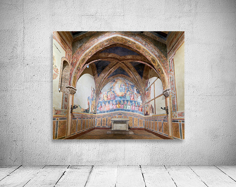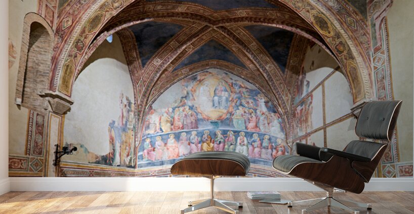 Frescoes by Cenni di Francesco Ser Cenni decorate the walls of San Lorenzo in Ponte. Visitors admire the art in the church.