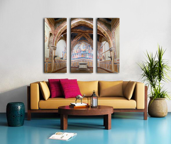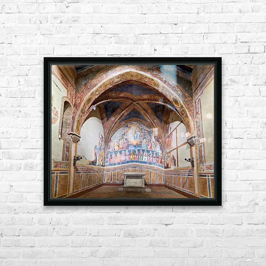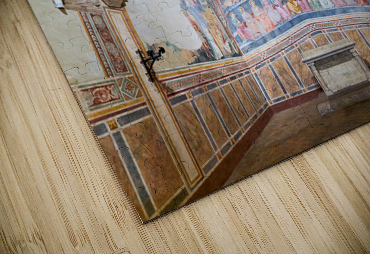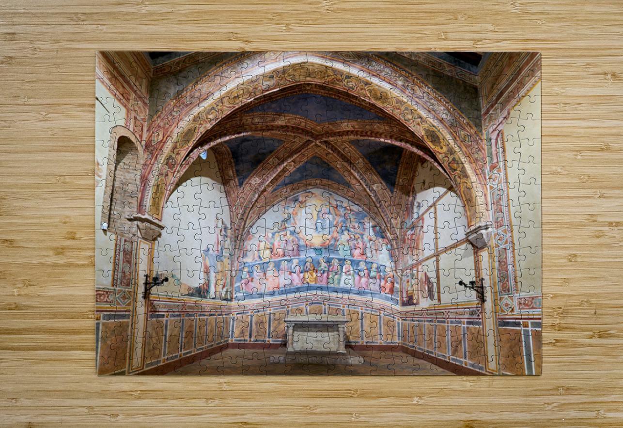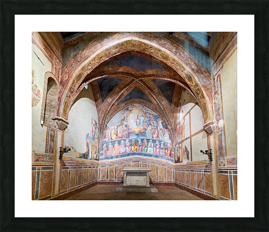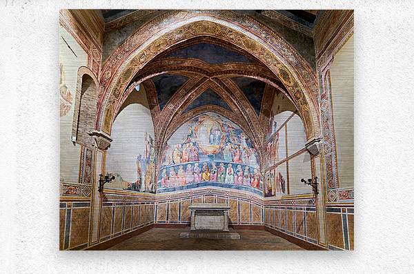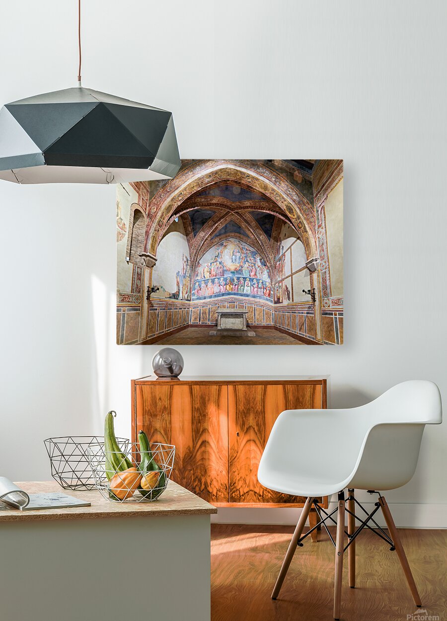 Frescoes by Cenni di Francesco Ser Cenni decorate the walls of San Lorenzo in Ponte. Visitors admire the art in the church.