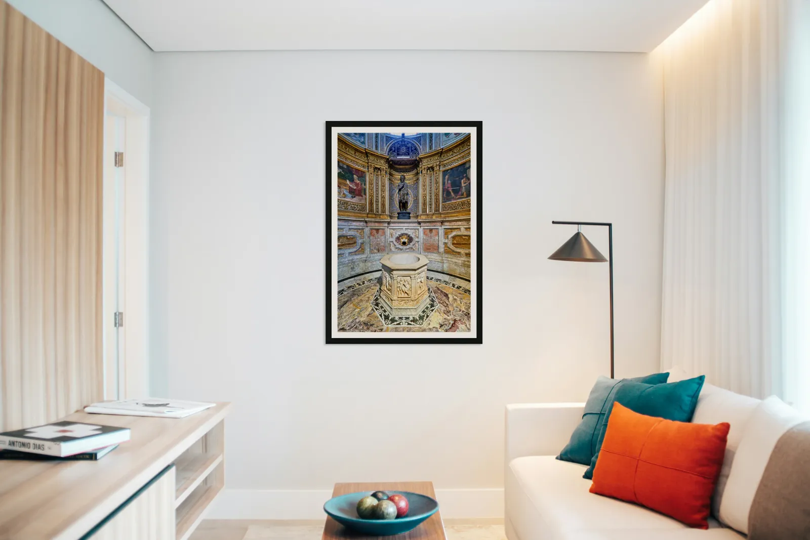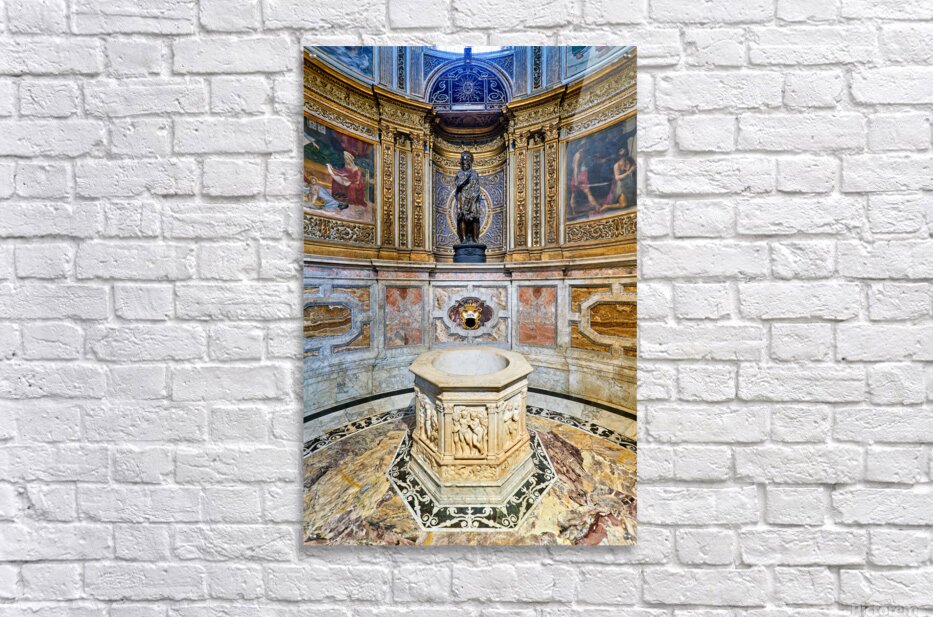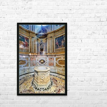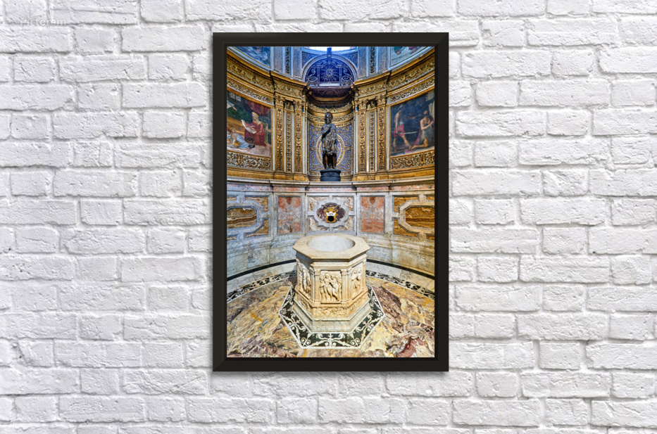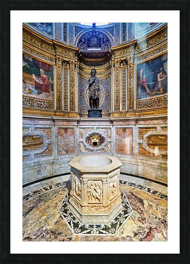"Statue of san giovanni battista in siena cathedral tuscany" in a framed print.
