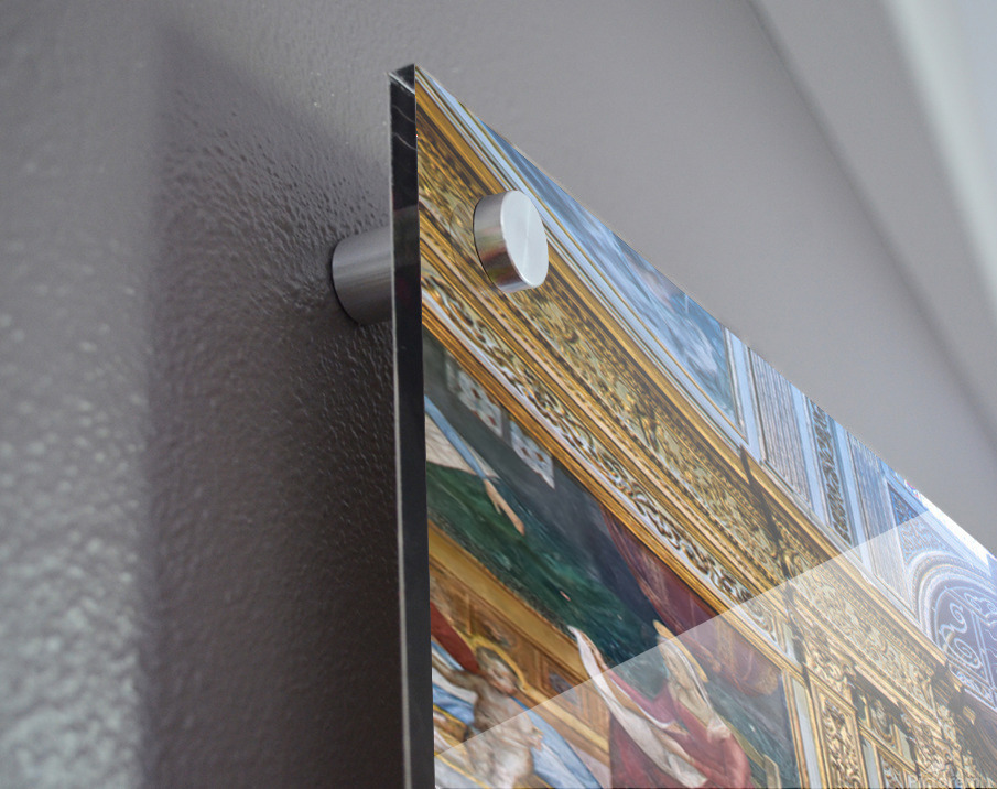 Printed to the edge - Ready to hang - provided with 4 premium polished aluminum stand off ( wall screws and mounting hardware provided )