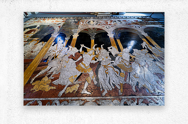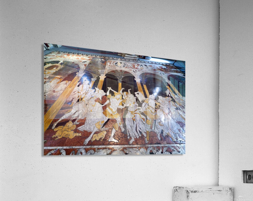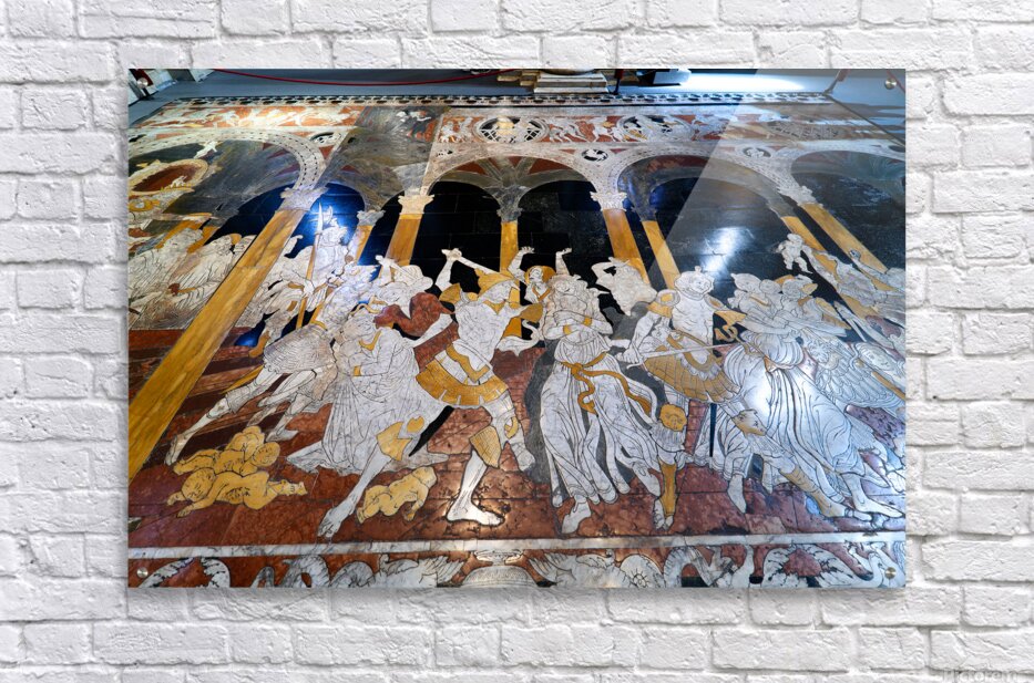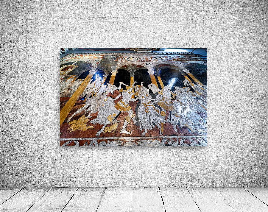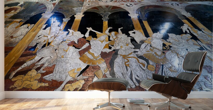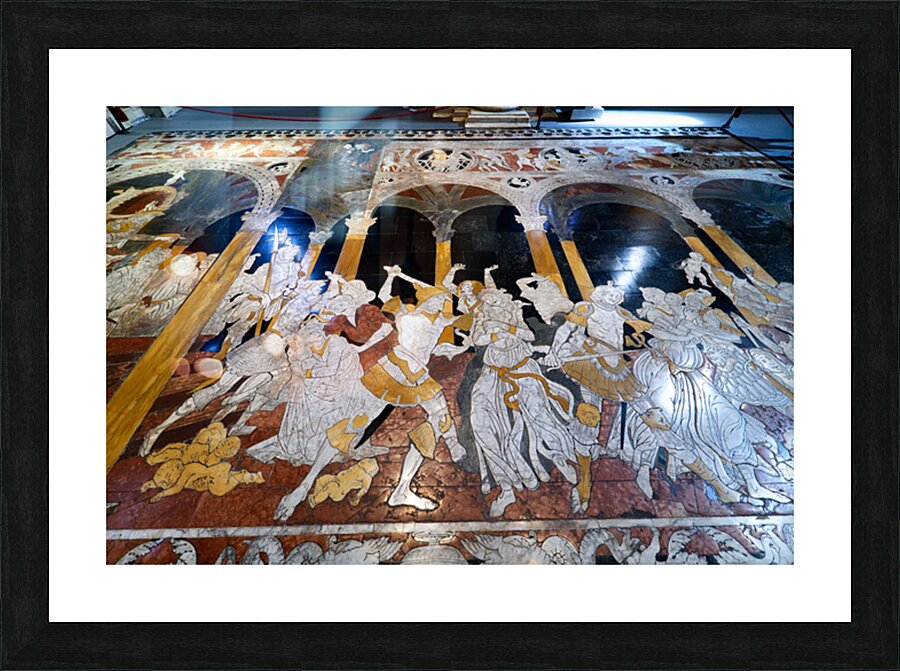 "Mosaic floor depicting the slaughter of the innocents in Siena" in a framed print.