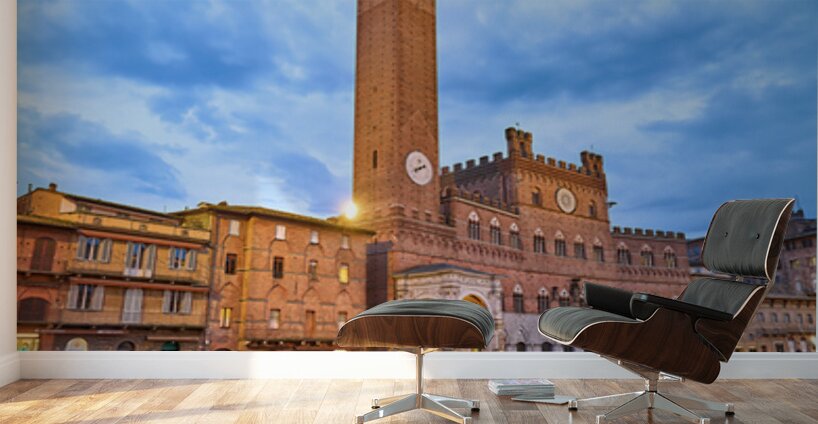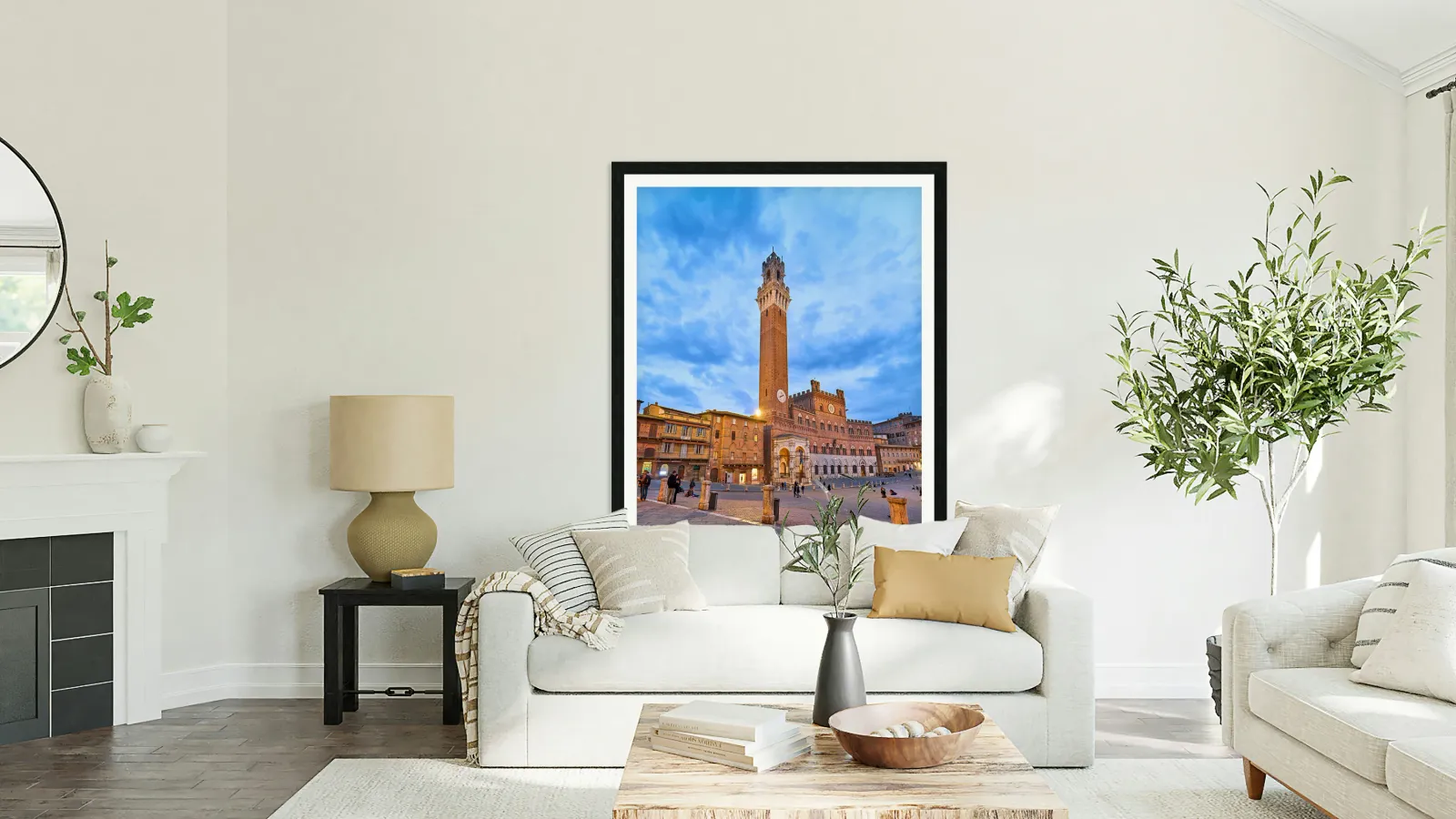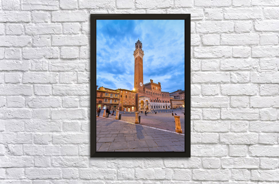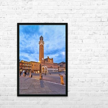 "Sunset view of Piazza del Campo in Siena Tuscany Italy" in a framed print.