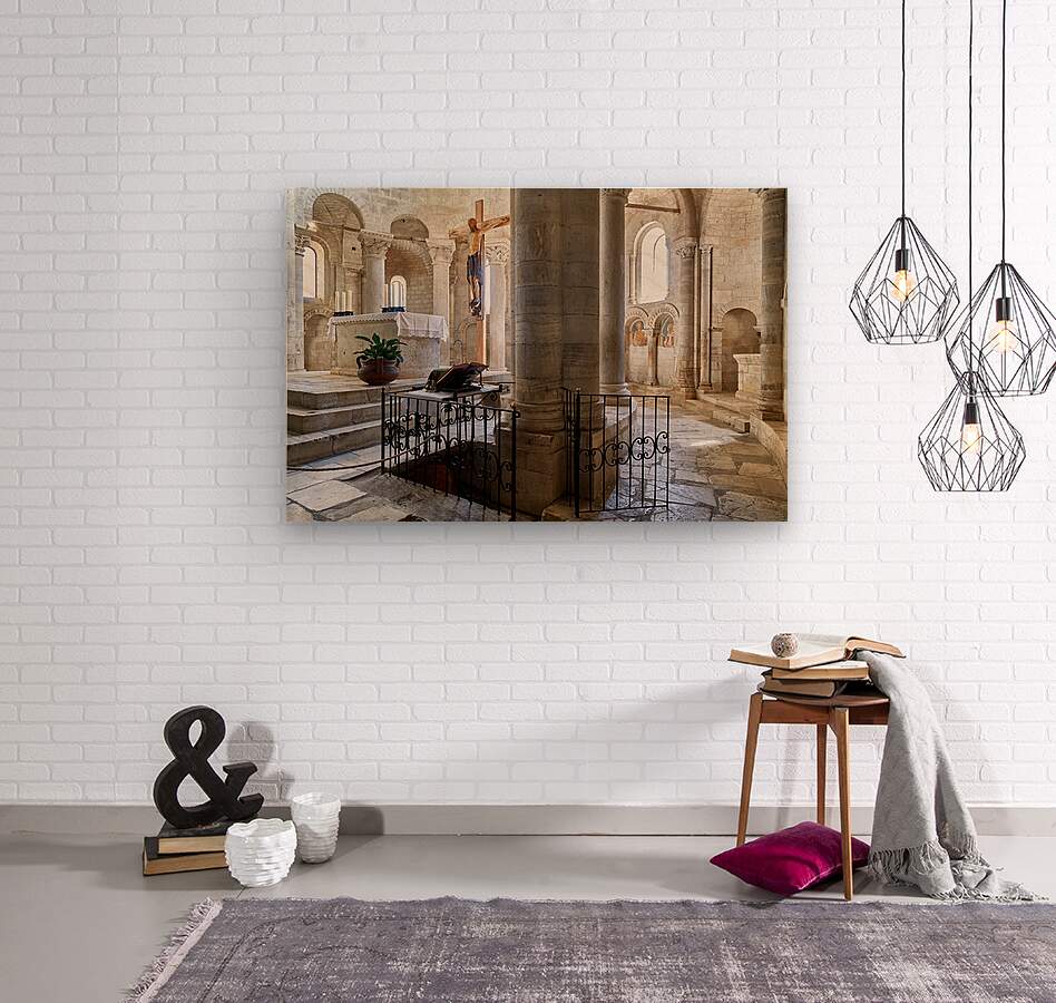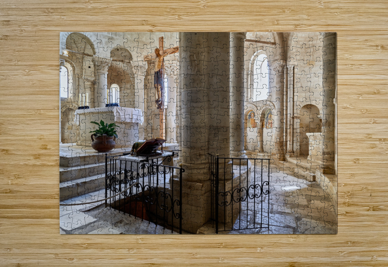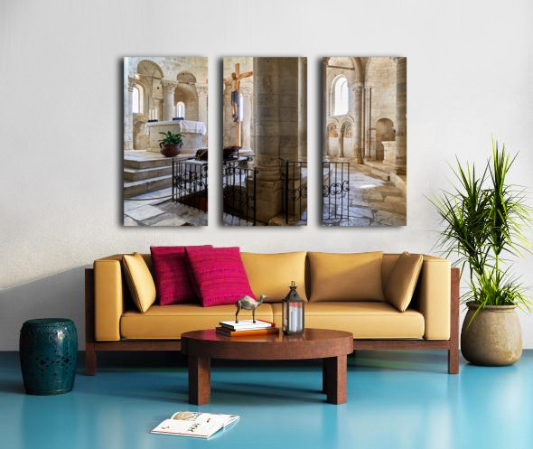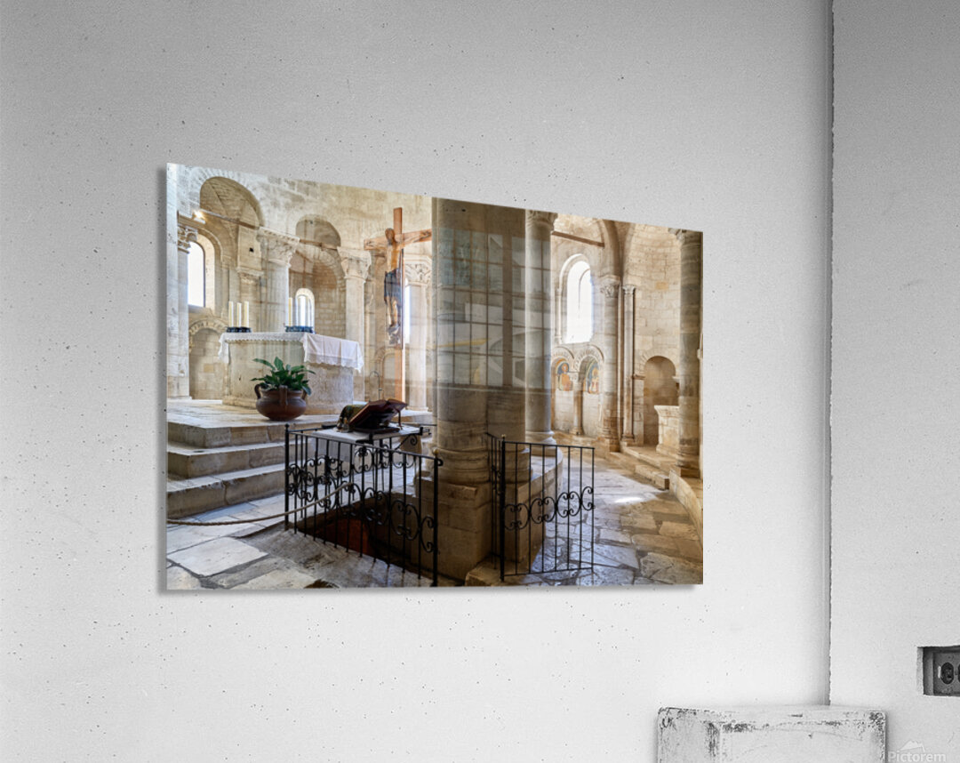 Inside the Abbey of SantAntimo a Benedictine monastery in Val dOrcia visitors explore the stone architecture and religious symbols.