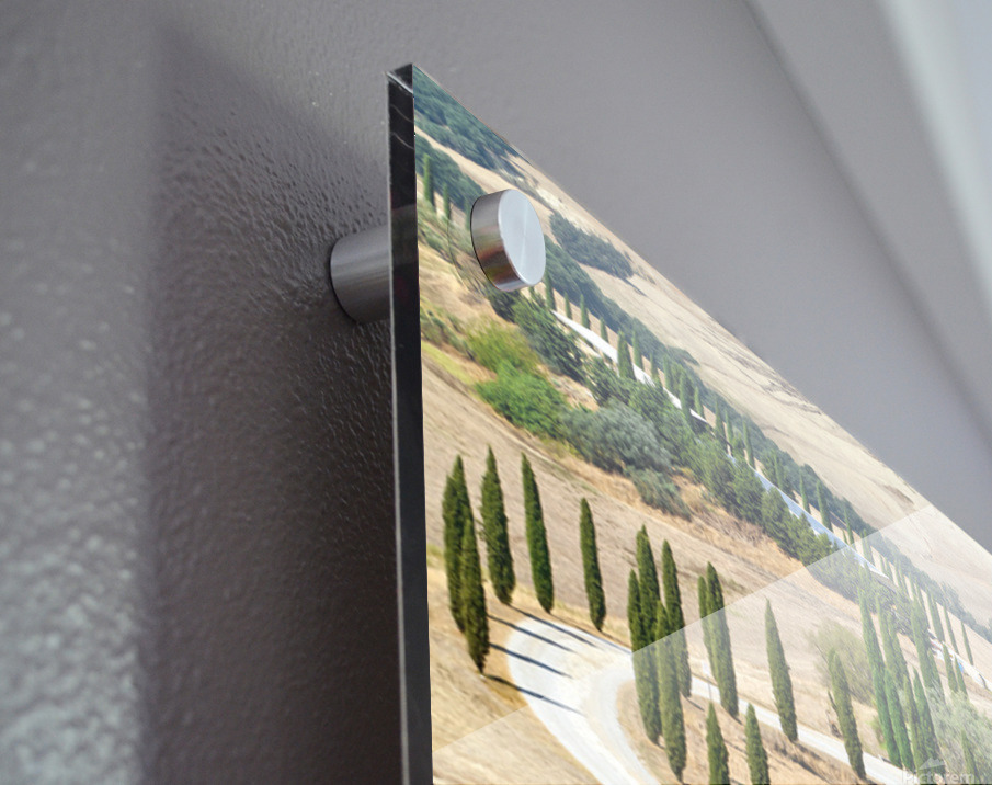 Printed to the edge - Ready to hang - provided with 4 premium polished aluminum stand off ( wall screws and mounting hardware provided )