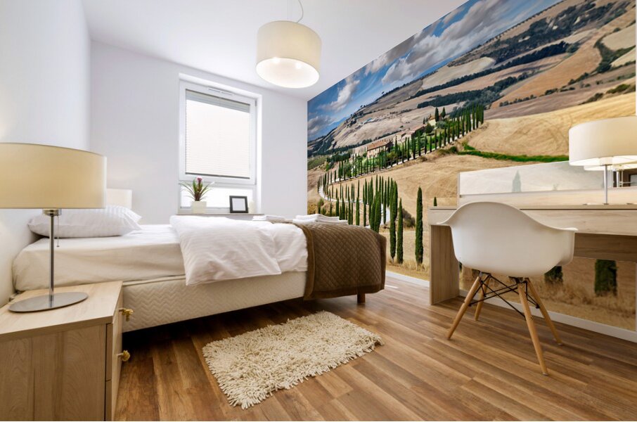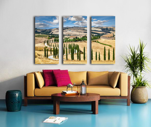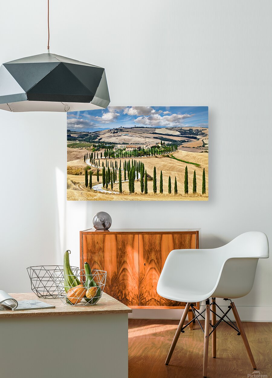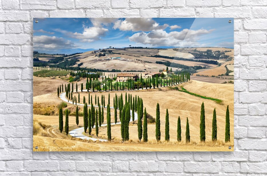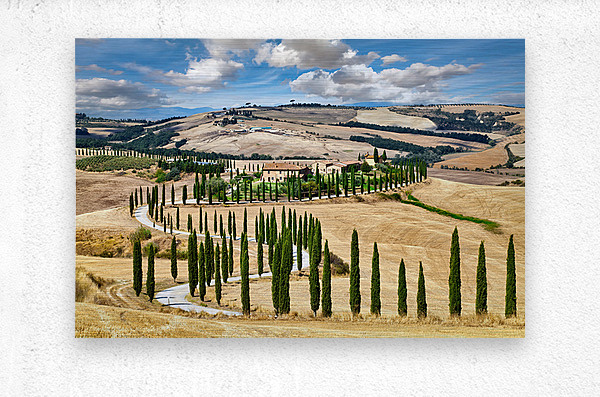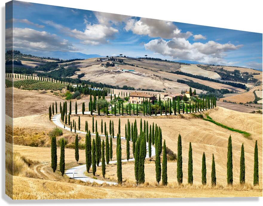 ABOUT THIS ARTWORK: CYPRESS TREES LINE WINDING ROAD IN VAL DORCIA TUSCANY