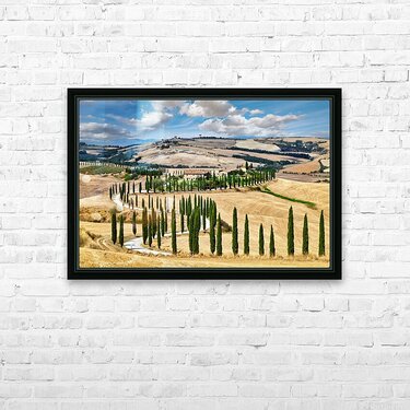 Get this artwork "Cypress trees line winding road in Val dOrcia Tuscany" in a framed print.