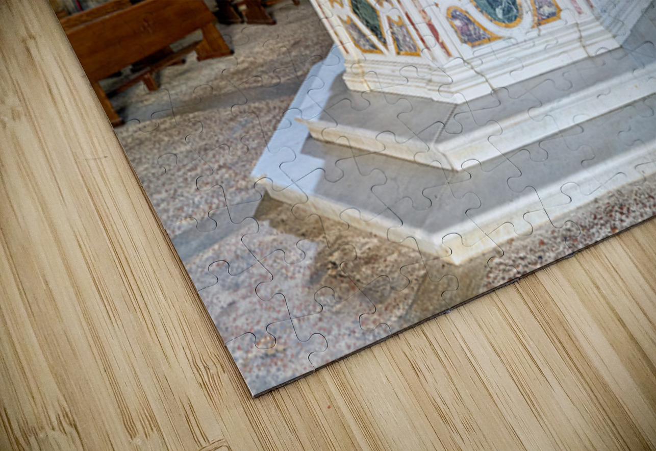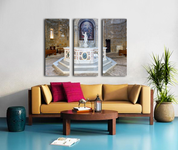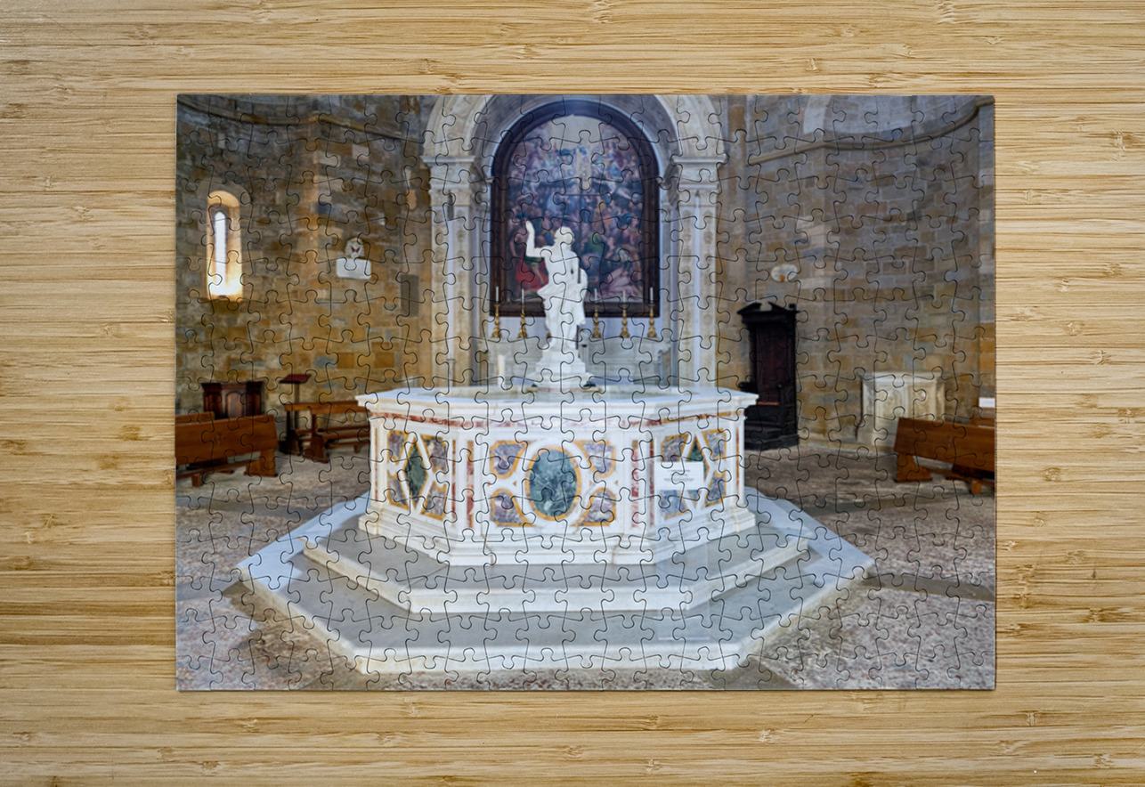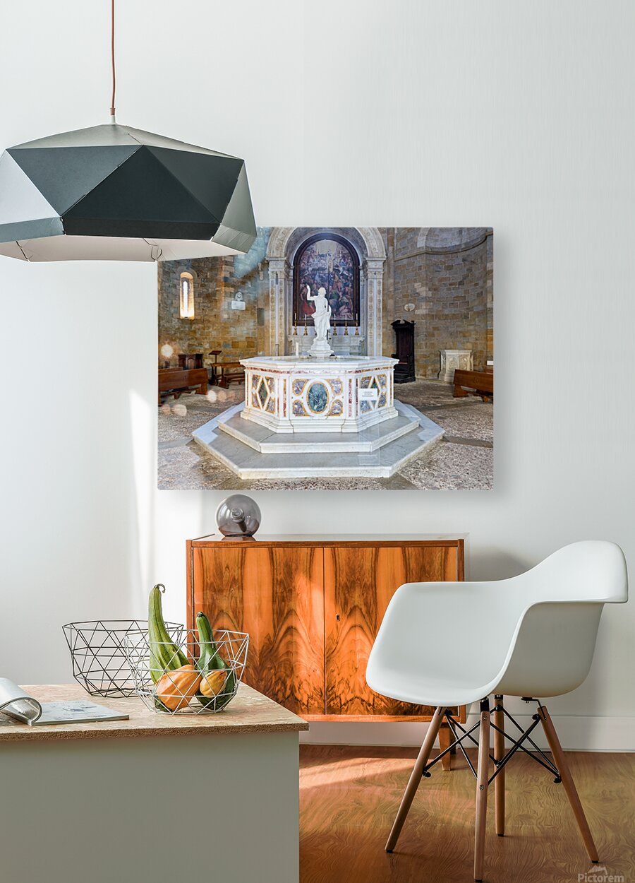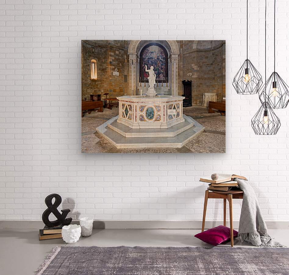 "Exploring the baptistery of san giovanni in volterra tuscany" in a framed print.