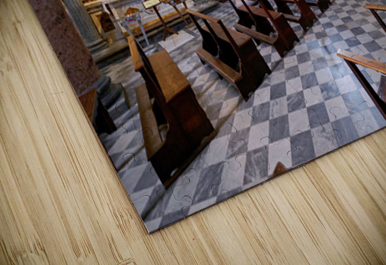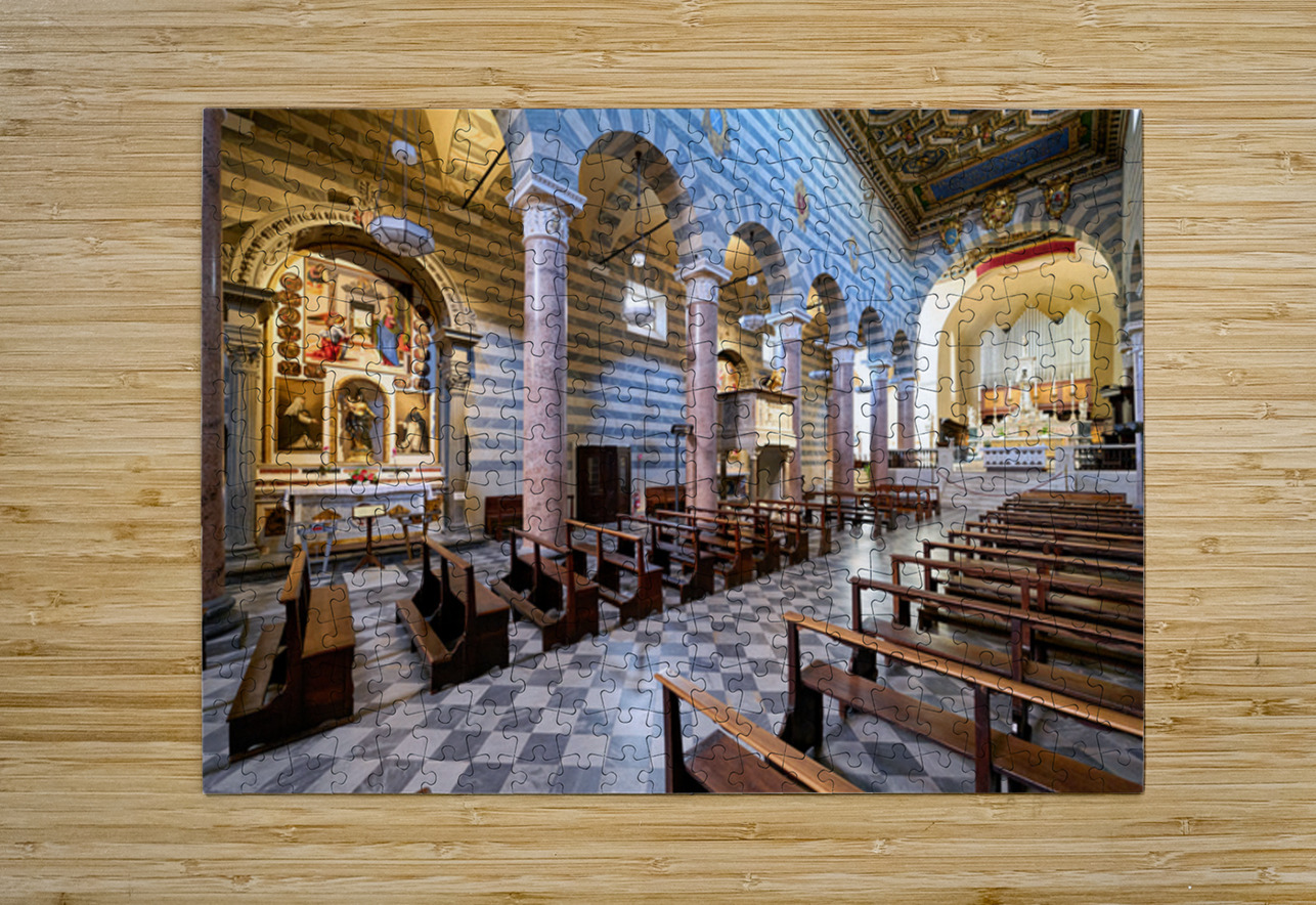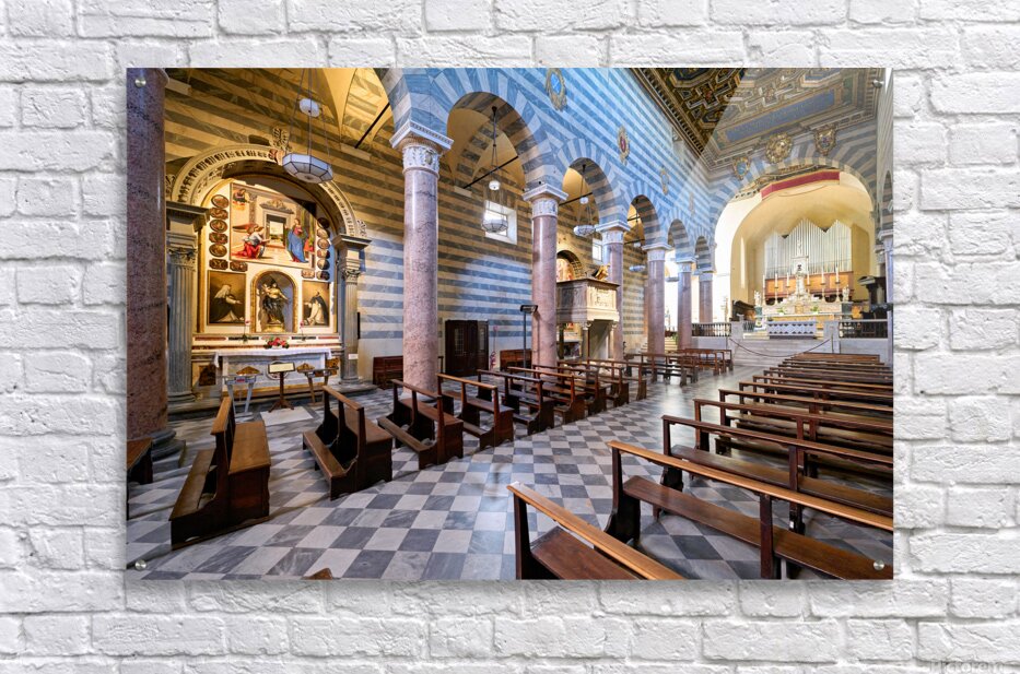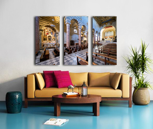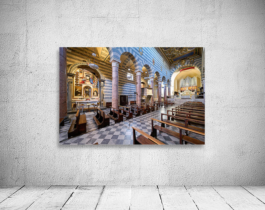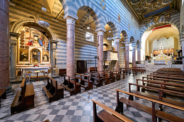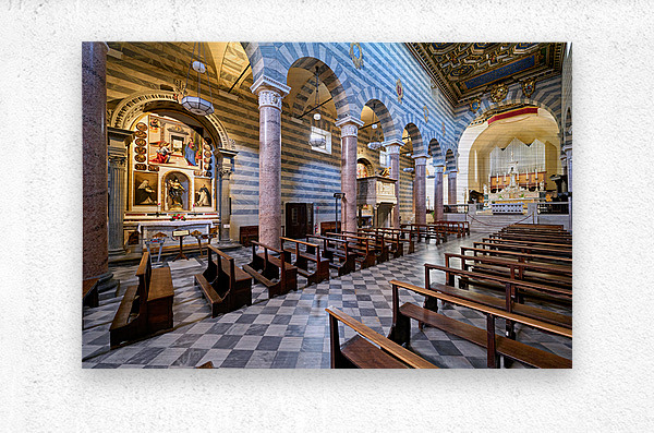 Inside the Duomo di Volterra people can see the tall columns paintings and empty wooden benches. This site is important for visitors in Tuscany.