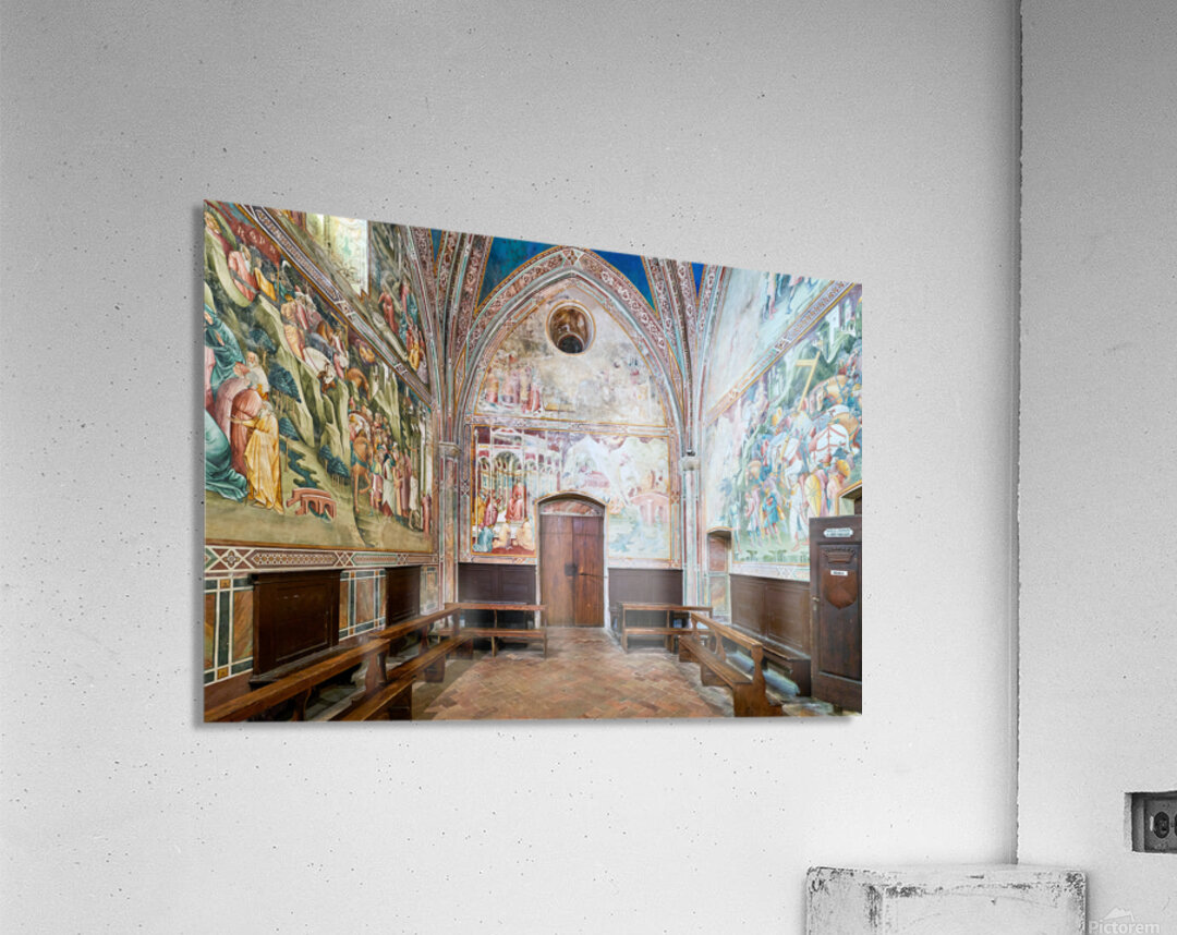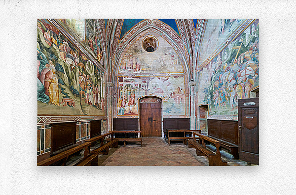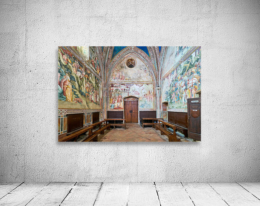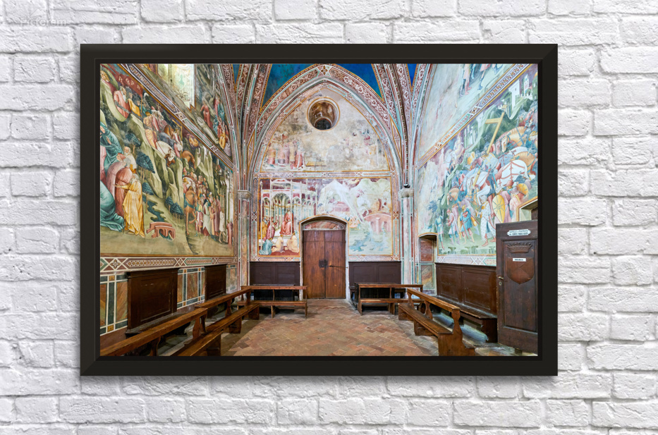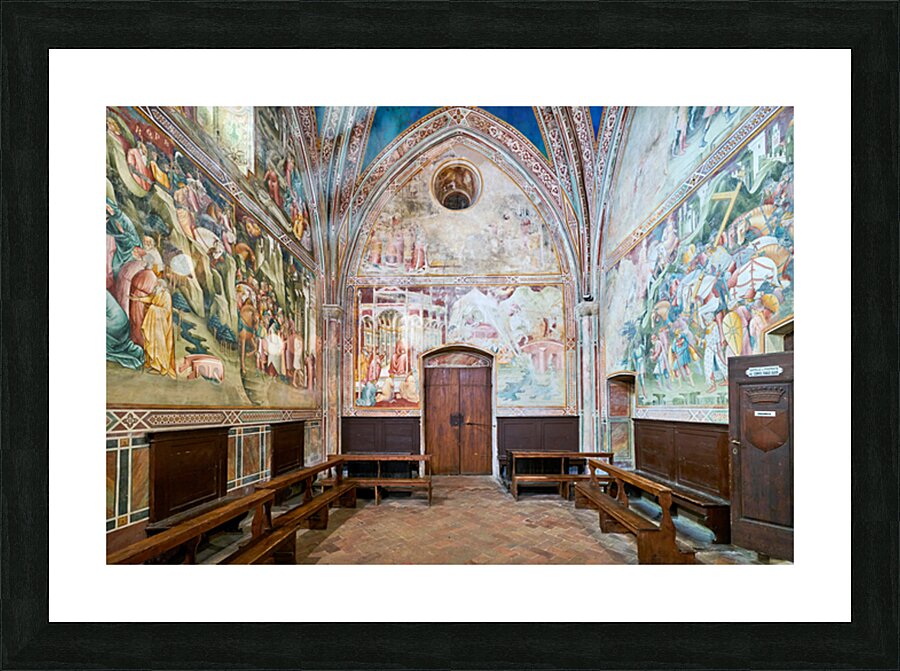 "Frescos in the daily cross chapel volterra italy" in a framed print.