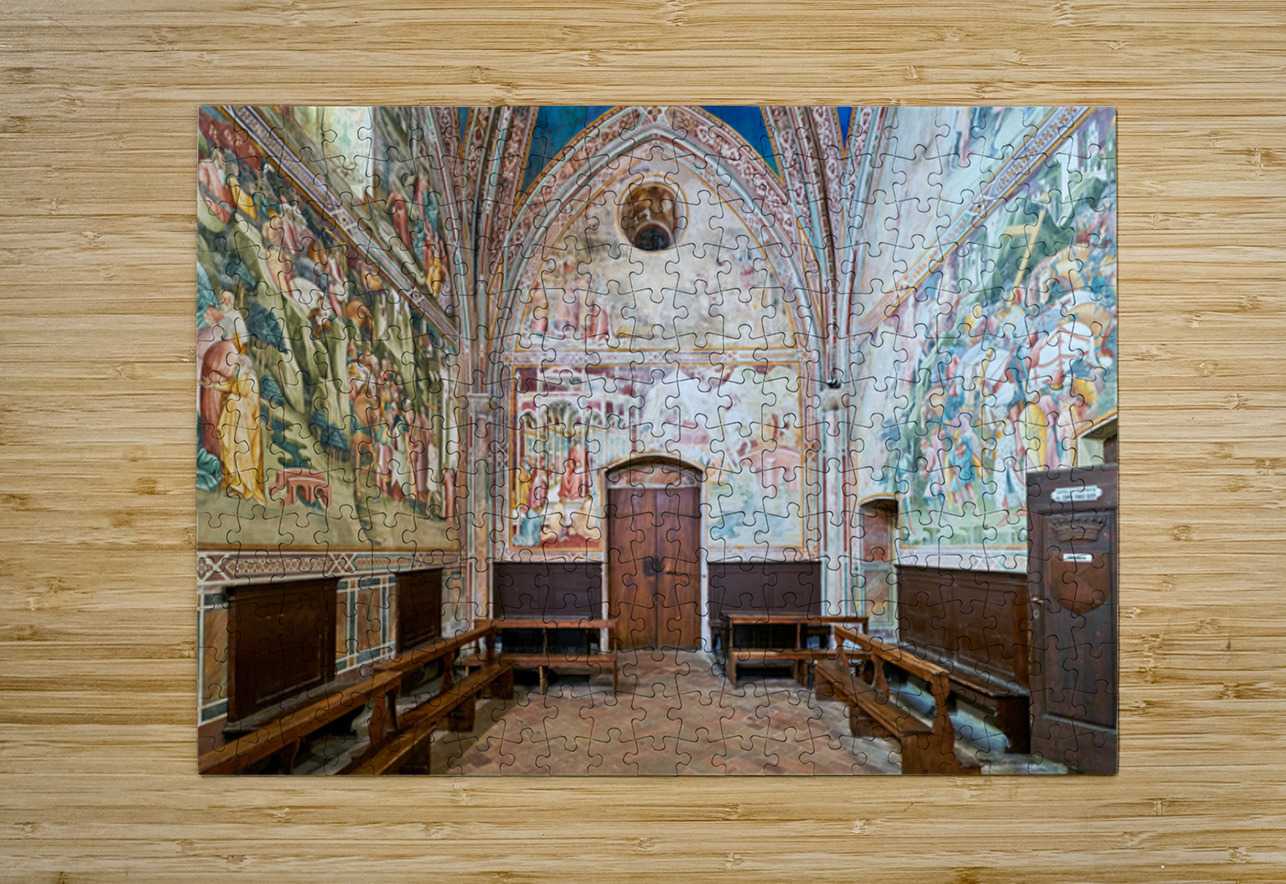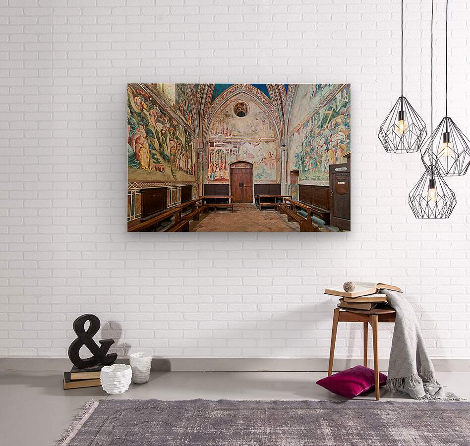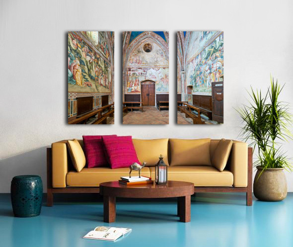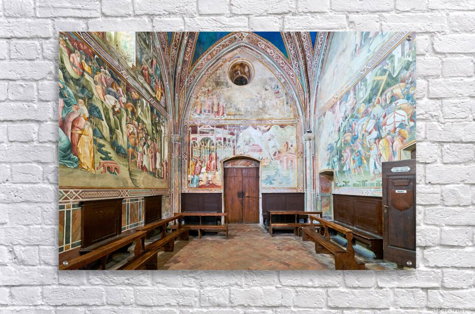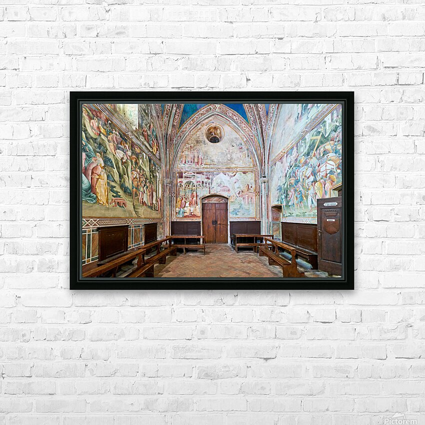 "Frescos in the daily cross chapel volterra italy" in a framed print.