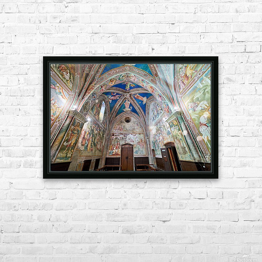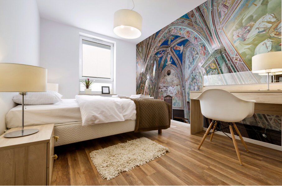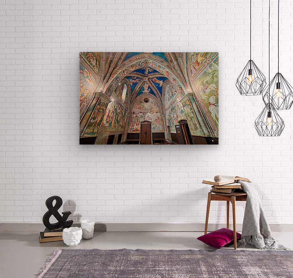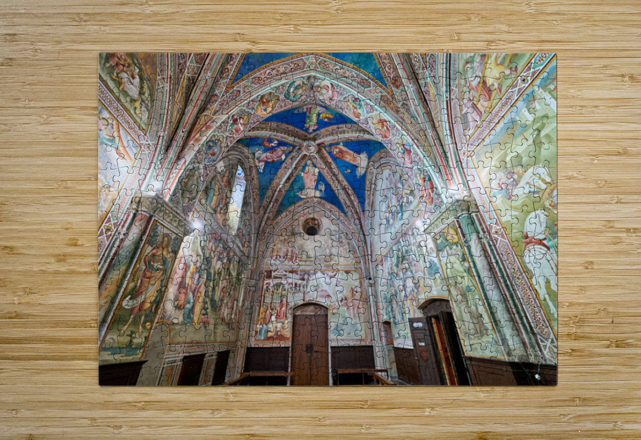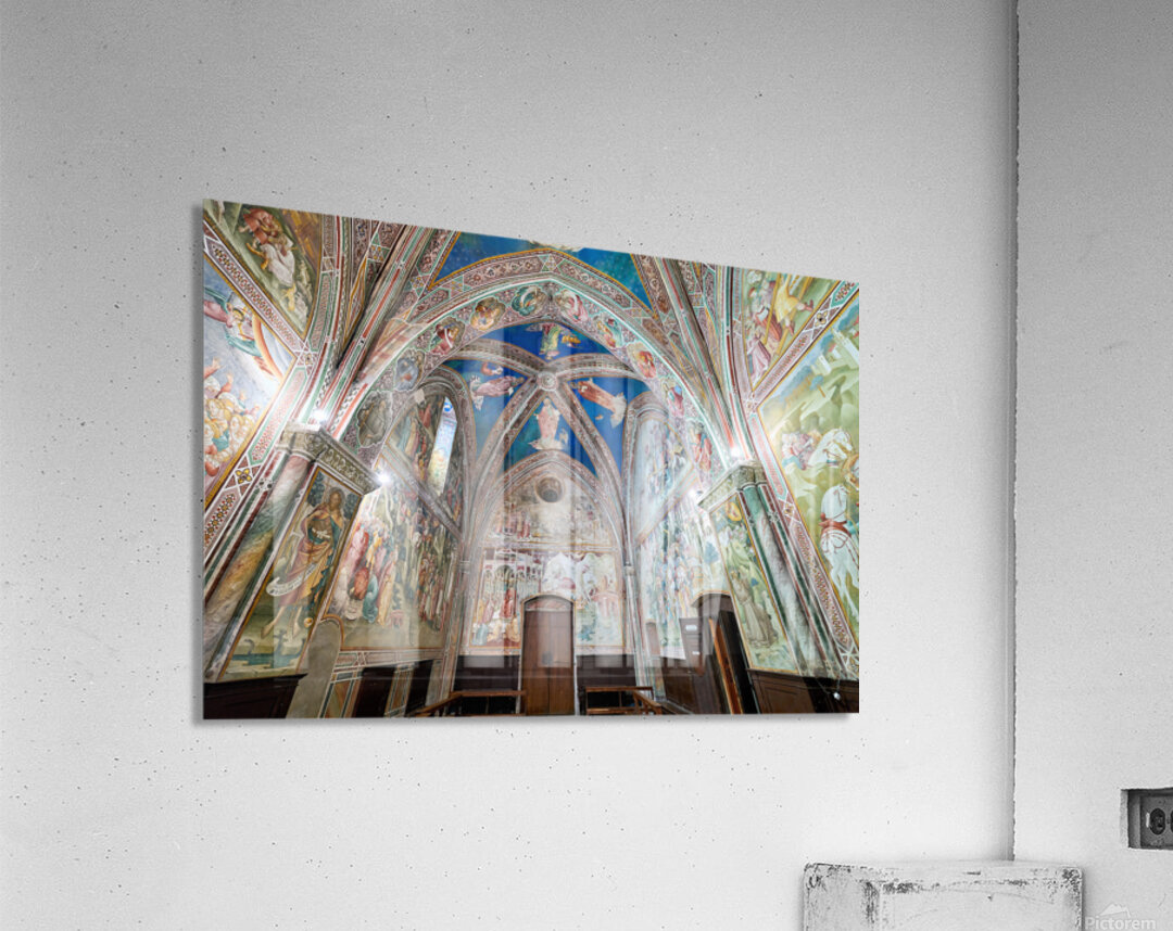 The Chapel of the Daily Cross shows detailed frescos on the walls and ceiling. Visitors can appreciate the artistry and history in Volterra Italy.