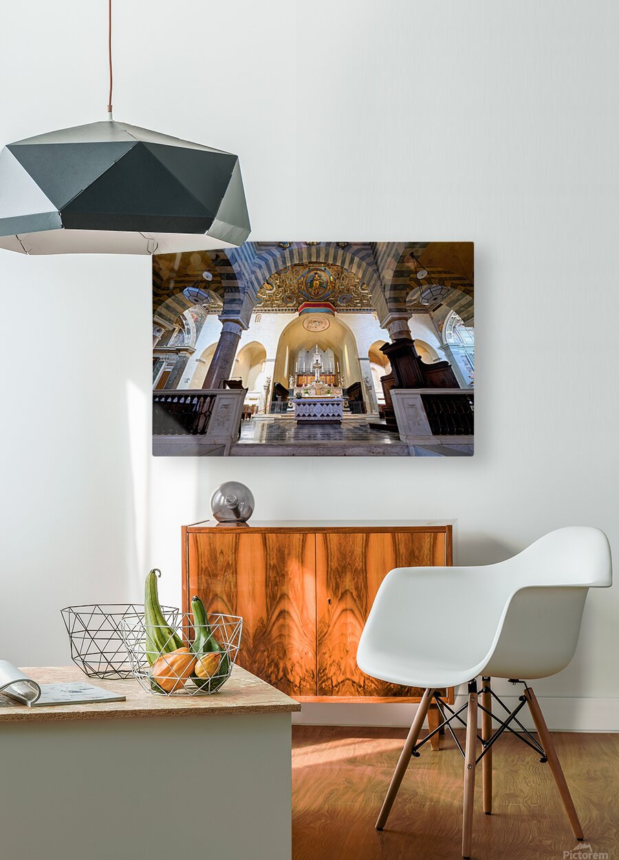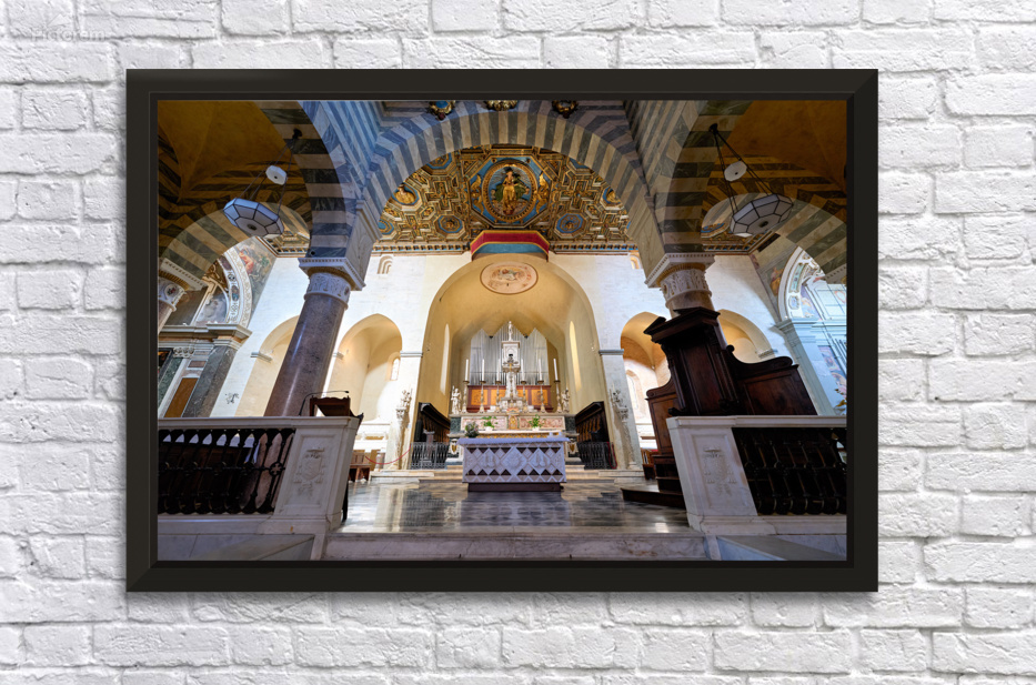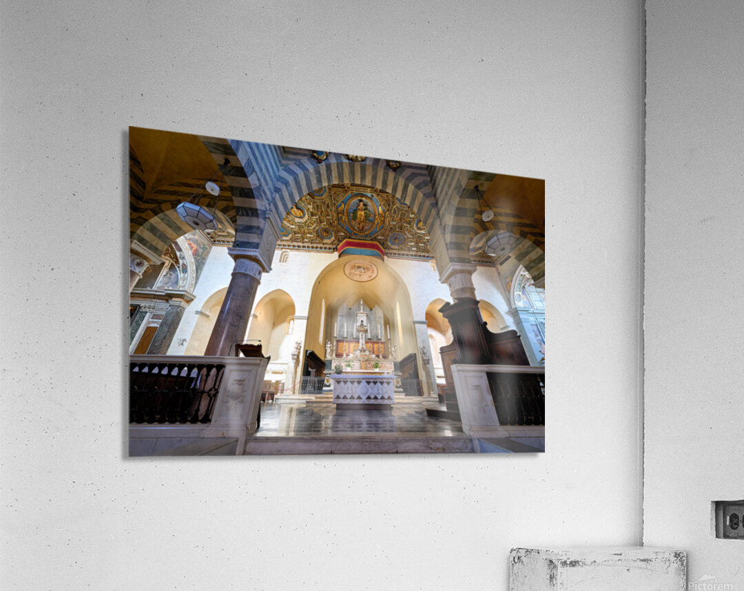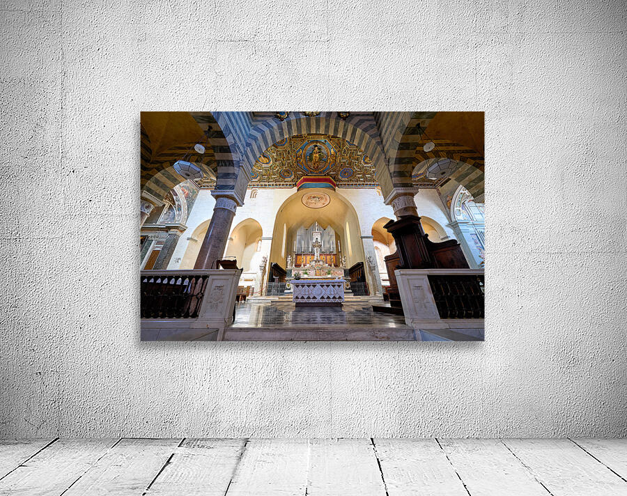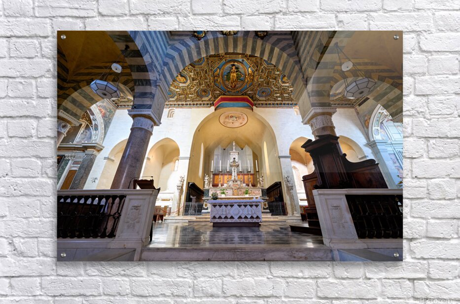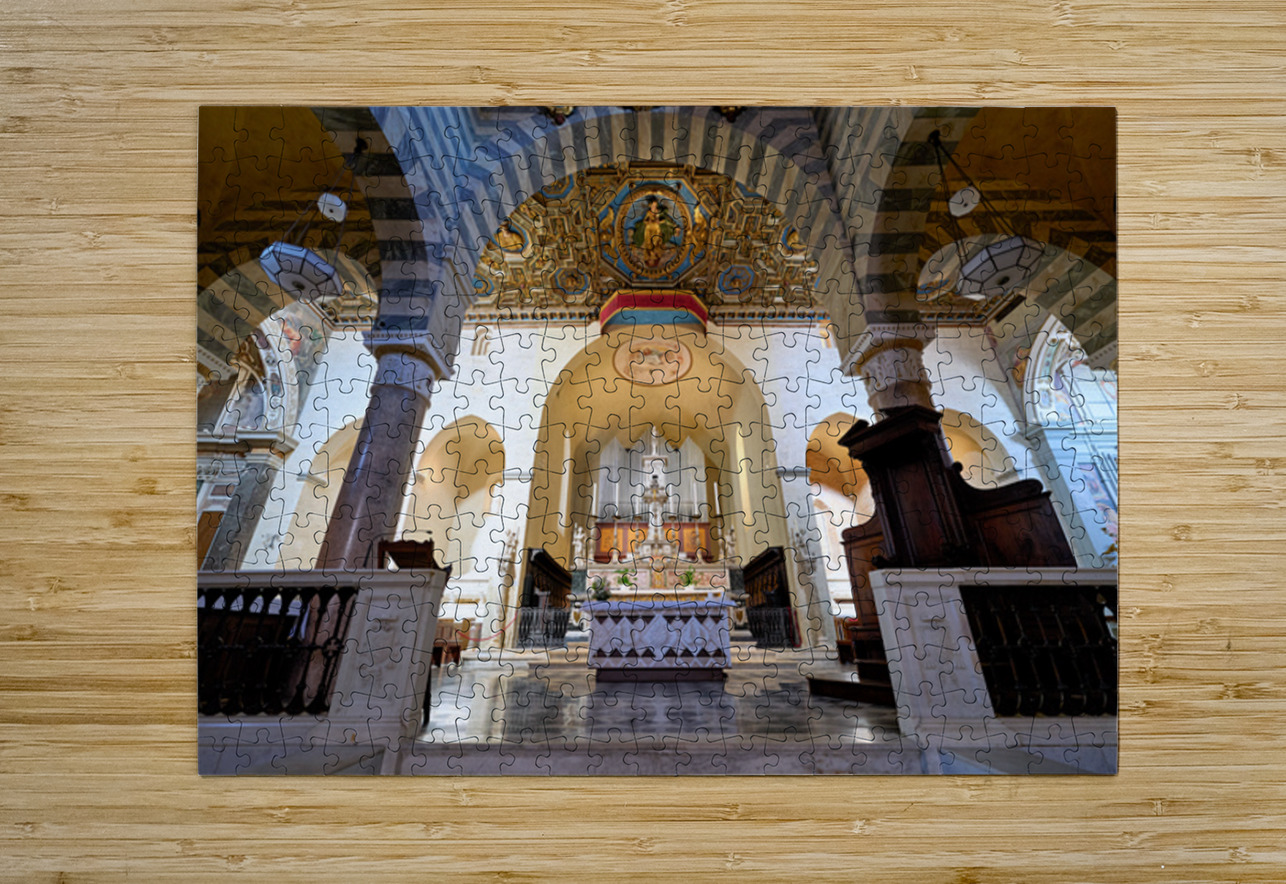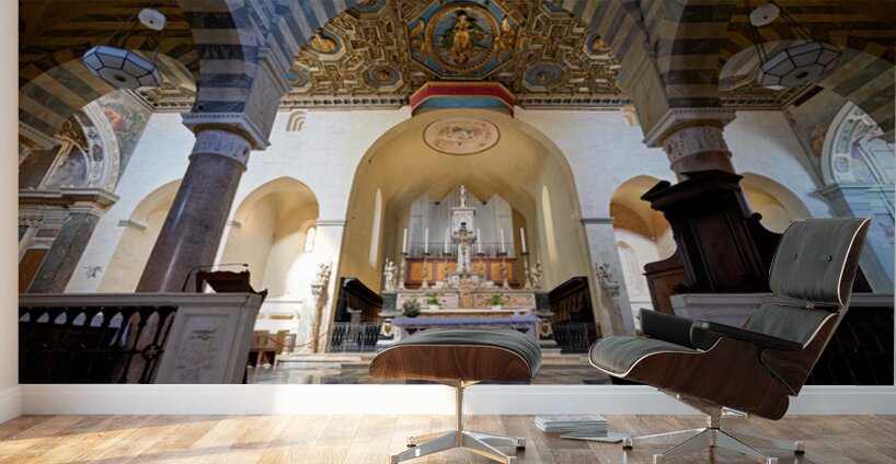 Duomo di Volterra stands tall in Tuscany. Sunlight fills the church space highlighting the altar and arches. People visit to admire the architecture.