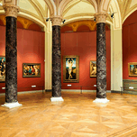 Visitors explore the displays at Stockholm Nationalmuseum. This space features art from different periods and styles.