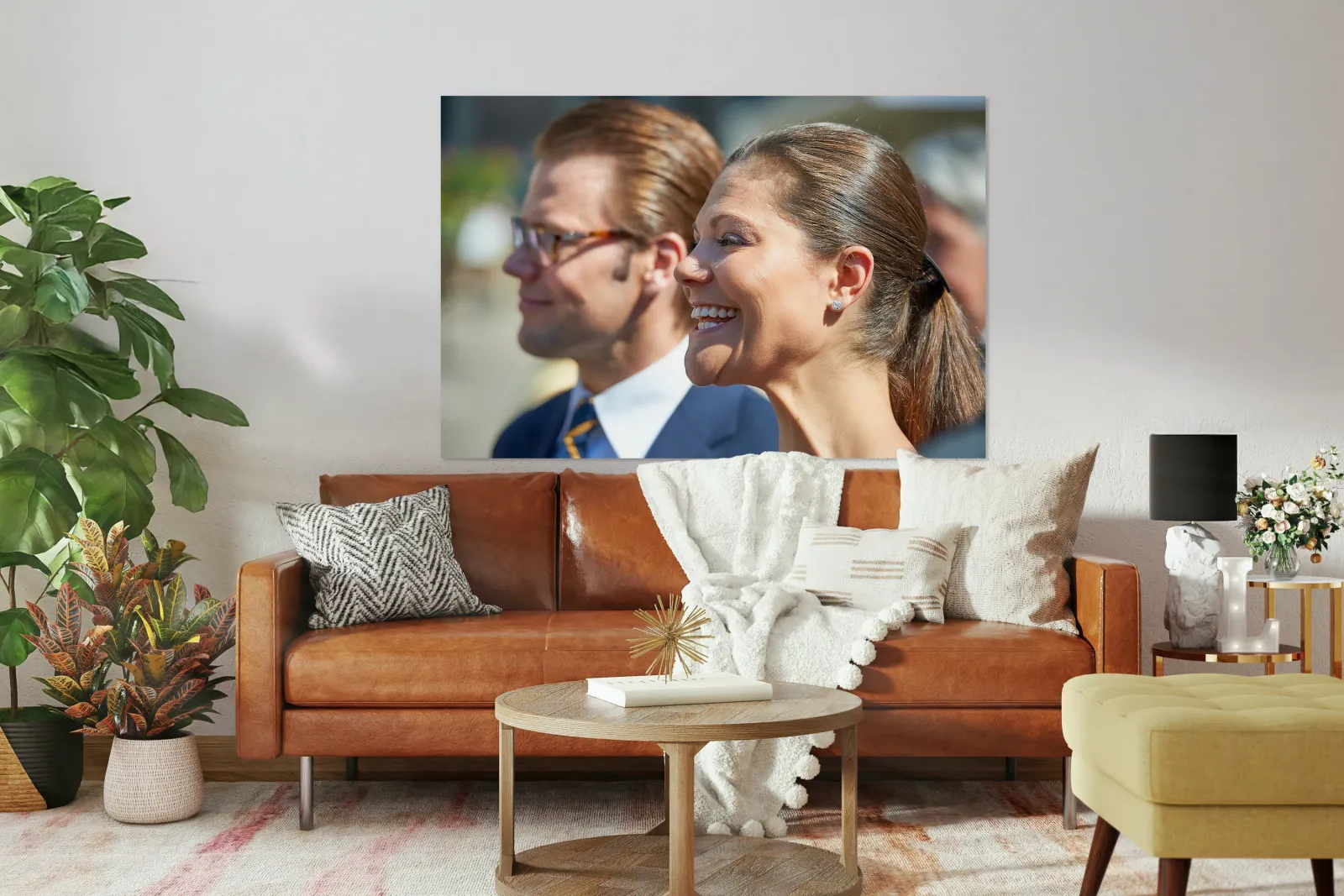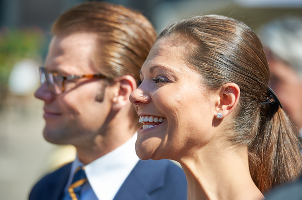 Crown Princess Victoria of Sweden and Prince Daniel Westling attend a public event in Stockholm smiling and engaging with the crowd.