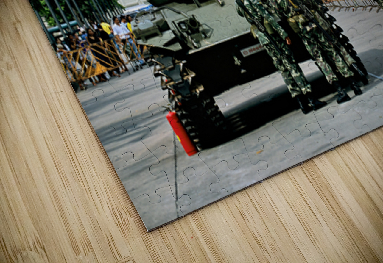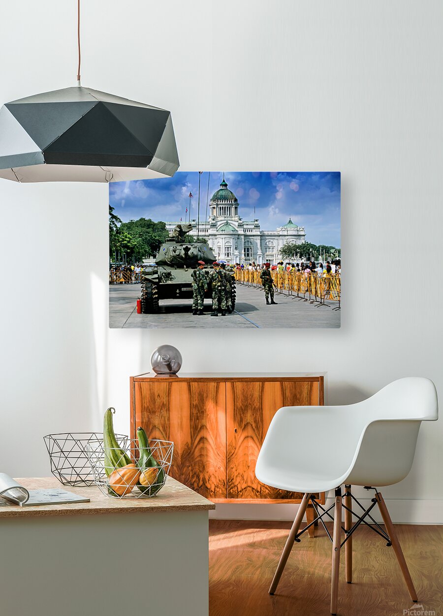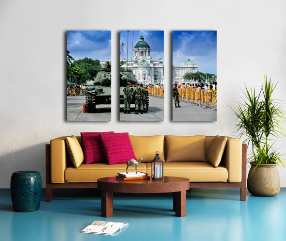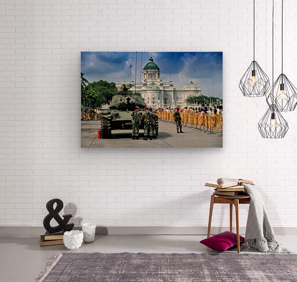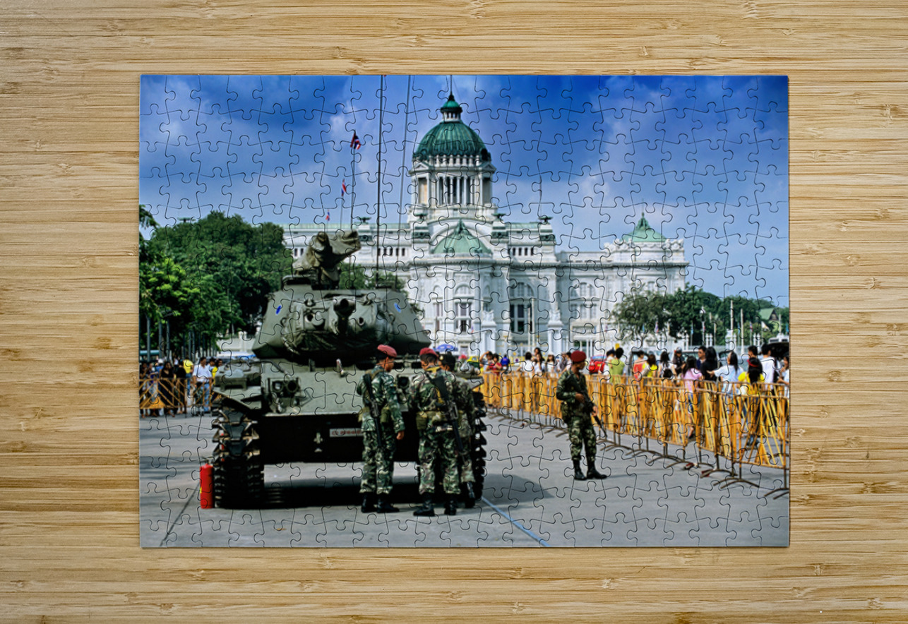 Military vehicles and soldiers stand in Bangkok during the 2006 coup with crowds gathering to show their support for the action.