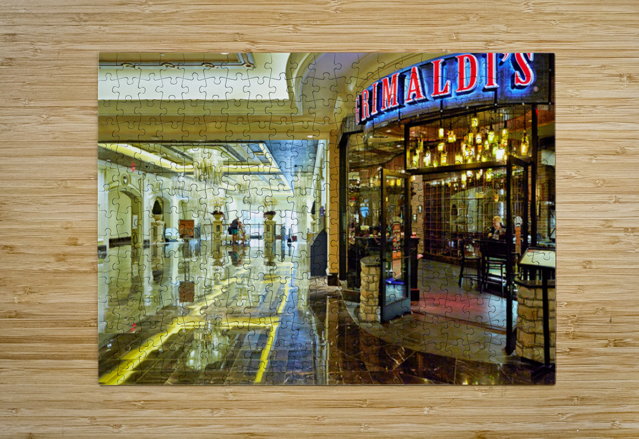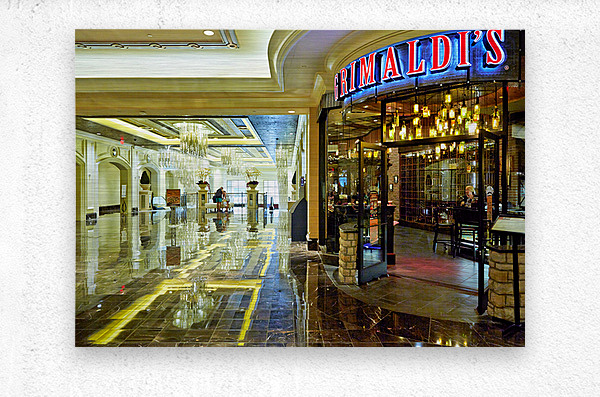 People visit Rimaldis at the Venetian Hotel in Las Vegas. They explore shops and enjoy the beautiful surroundings on a busy day.
