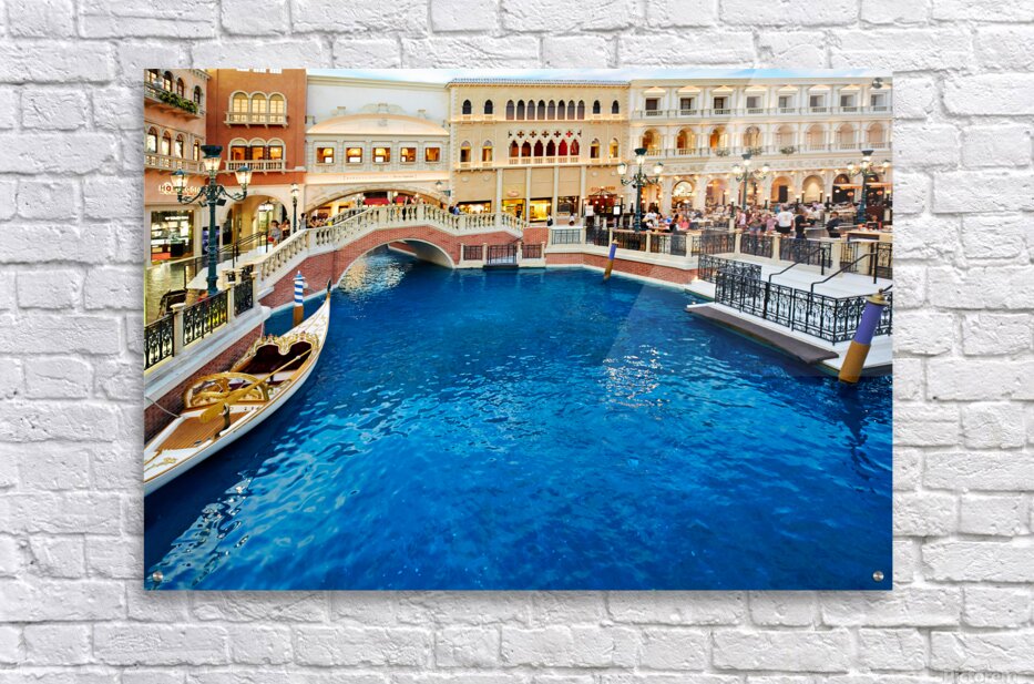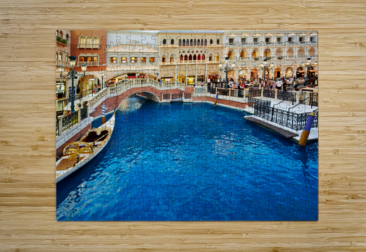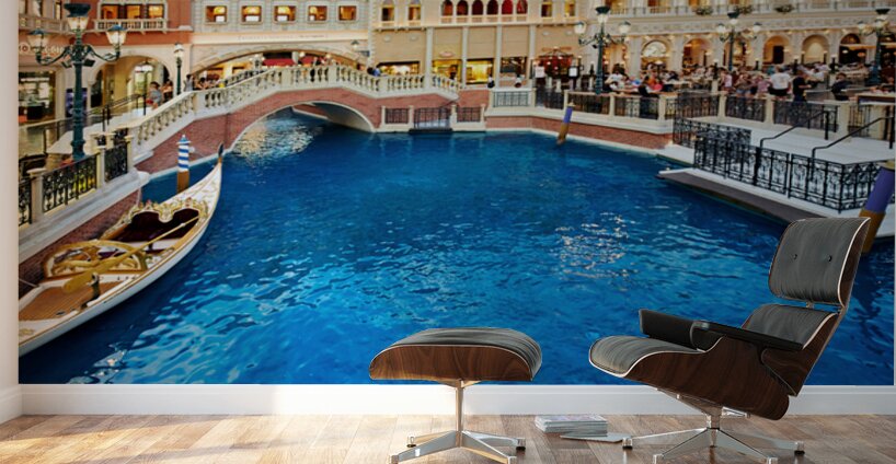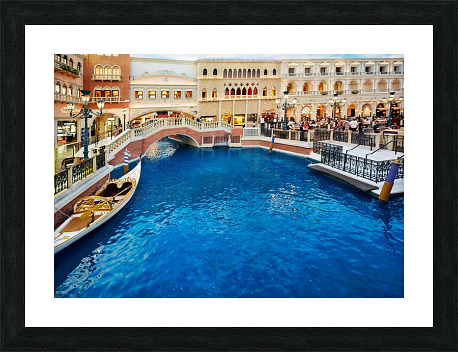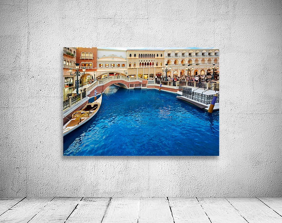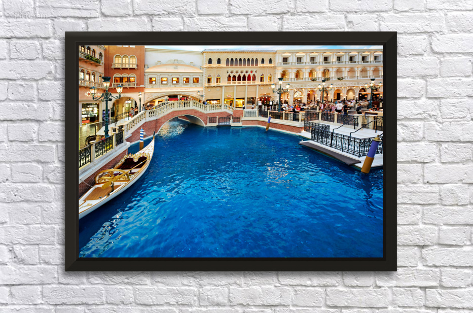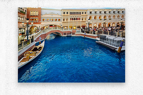 Visitors stroll along the canals of Little Venice at the Venetian Hotel Mall in Las Vegas enjoying the unique atmosphere and sights.