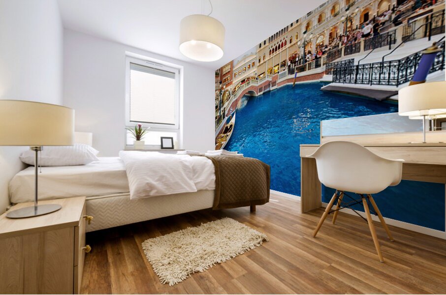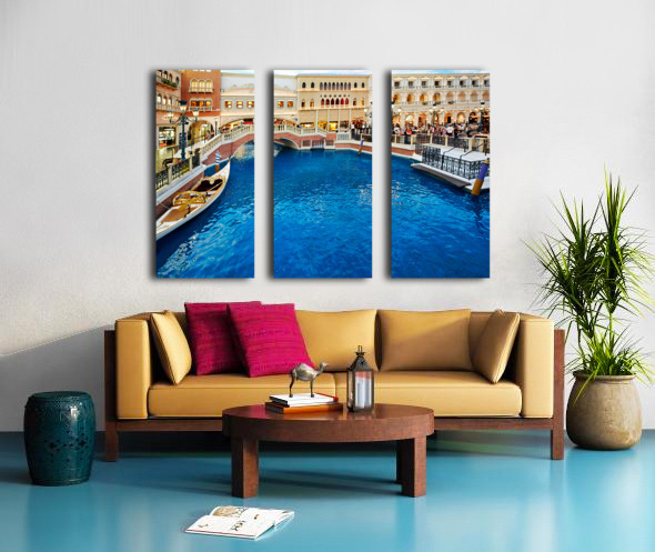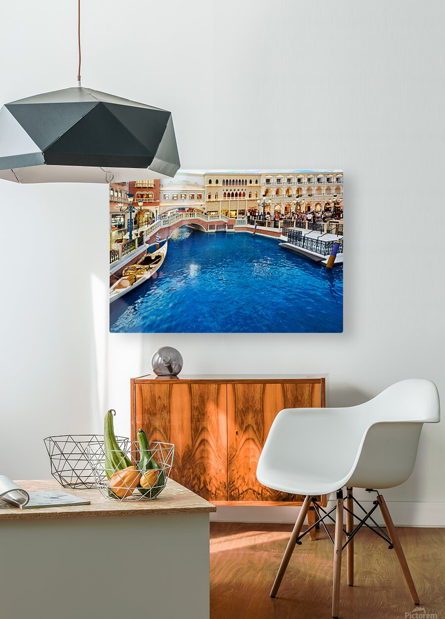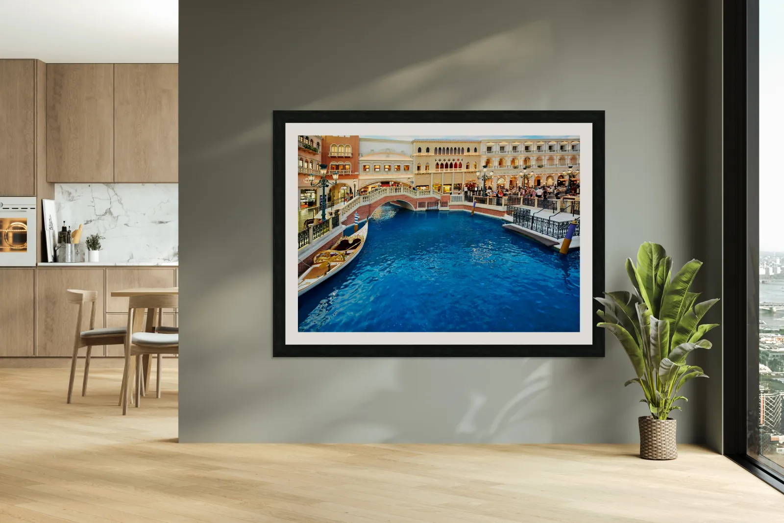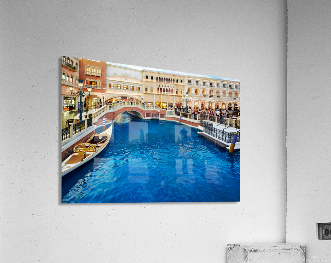 Visitors stroll along the canals of Little Venice at the Venetian Hotel Mall in Las Vegas enjoying the unique atmosphere and sights.
