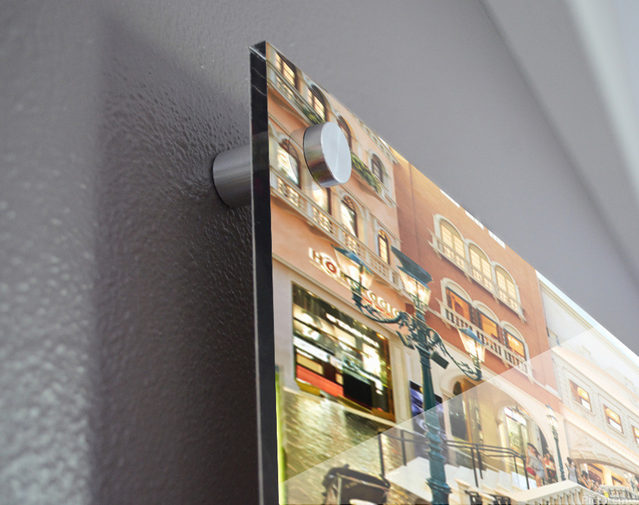Printed to the edge - Ready to hang - provided with 4 premium polished aluminum stand off ( wall screws and mounting hardware provided )