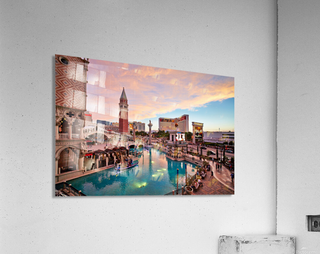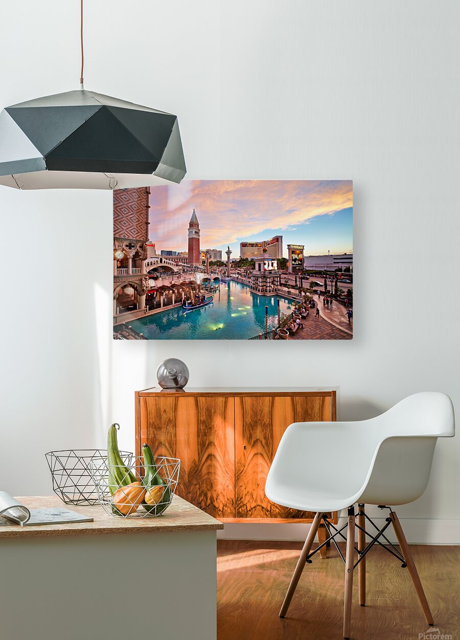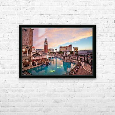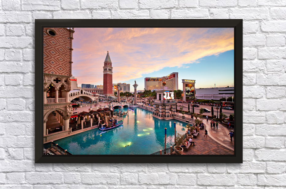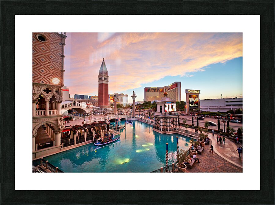 "Sunset view of Venetian Hotel in Las Vegas Nevada" in a framed print.