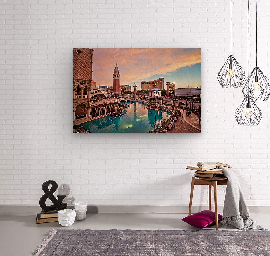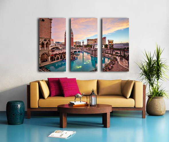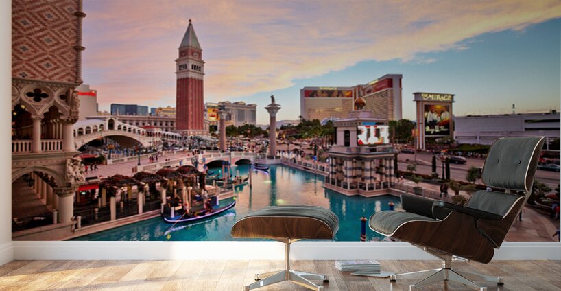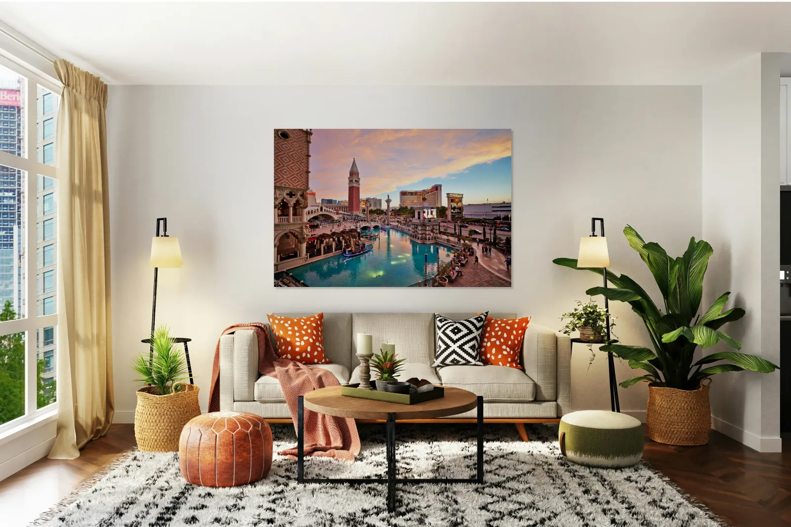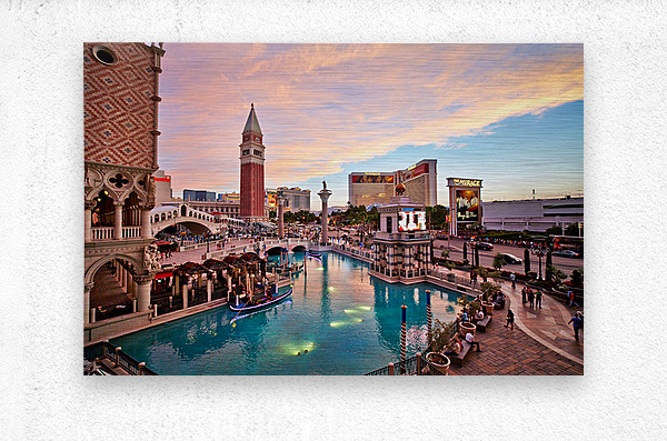 "Sunset view of Venetian Hotel in Las Vegas Nevada" in a framed print.