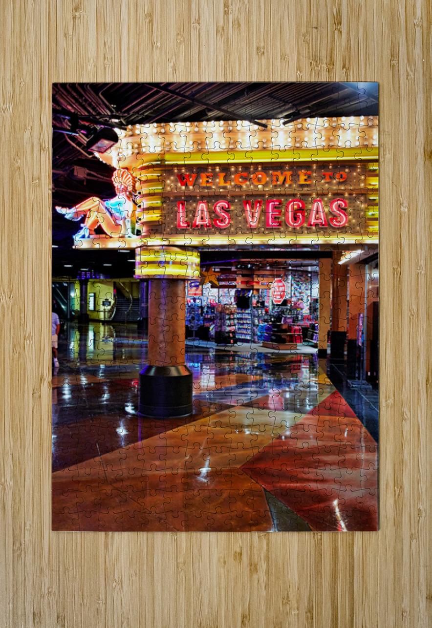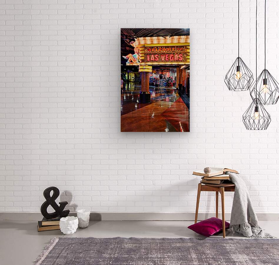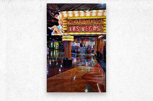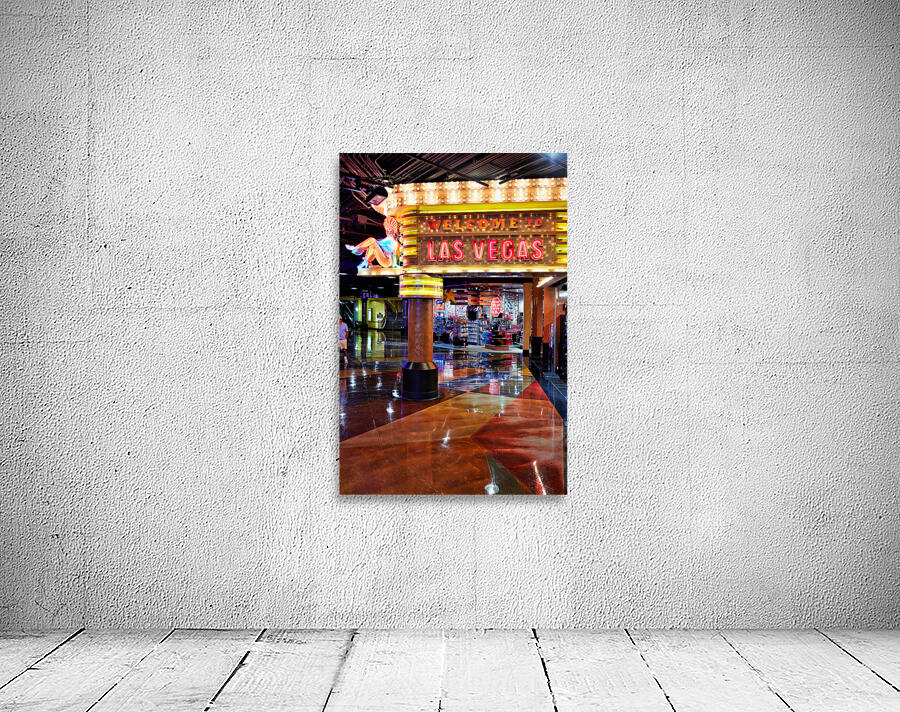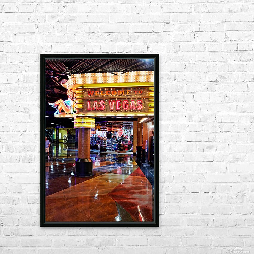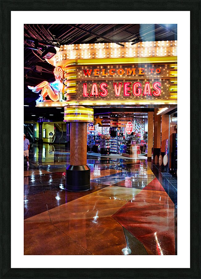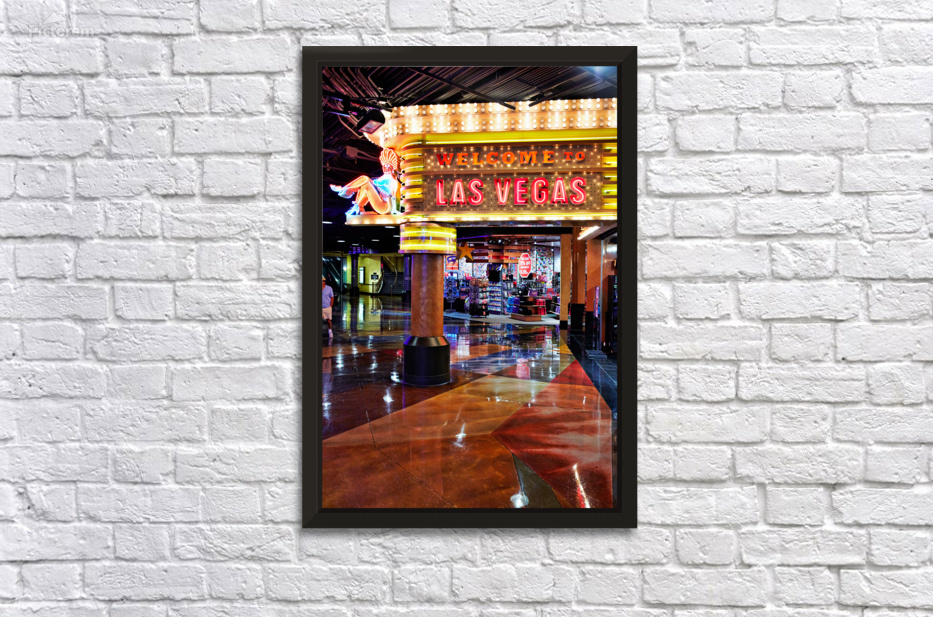 "Visit Las Vegas sign near MGM Grand Hotel at night" in a framed print.