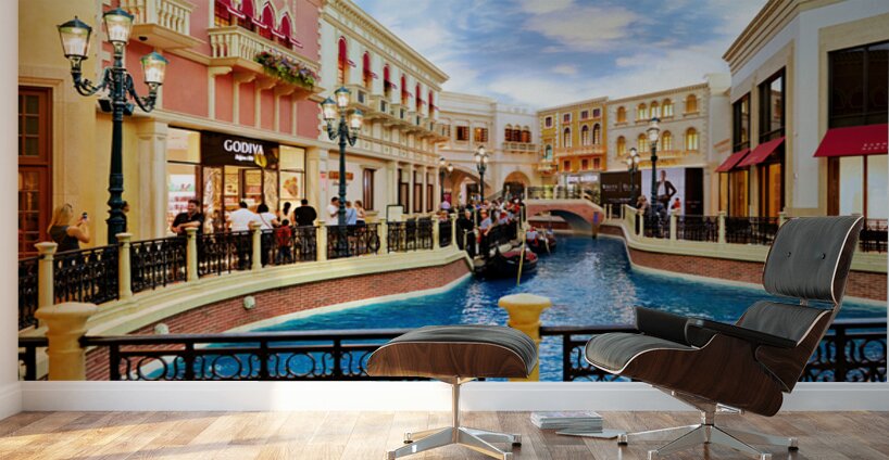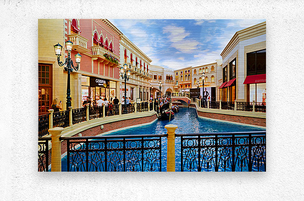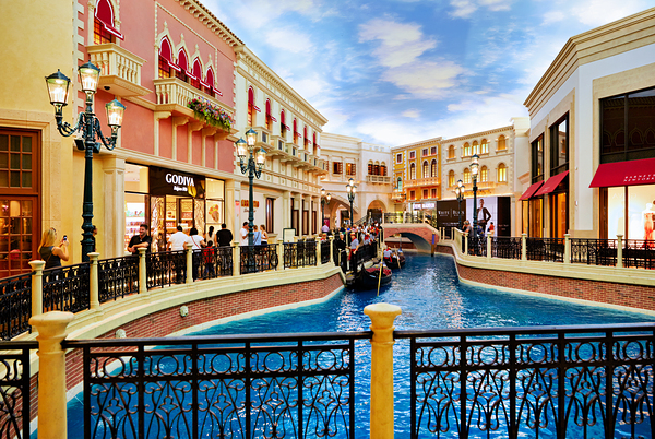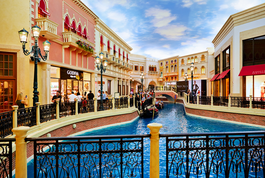 Visitors enjoy the charm of Little Venice taking gondola rides and exploring shops at the Venetian Hotel and Casino in Las Vegas.