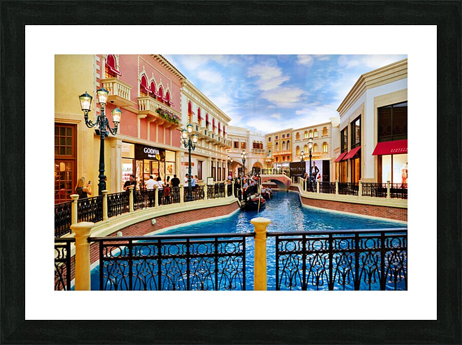 "Explore little venice at the venetian hotel in las vegas" in a framed print.