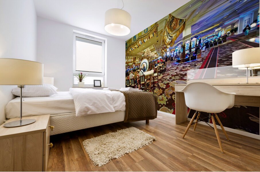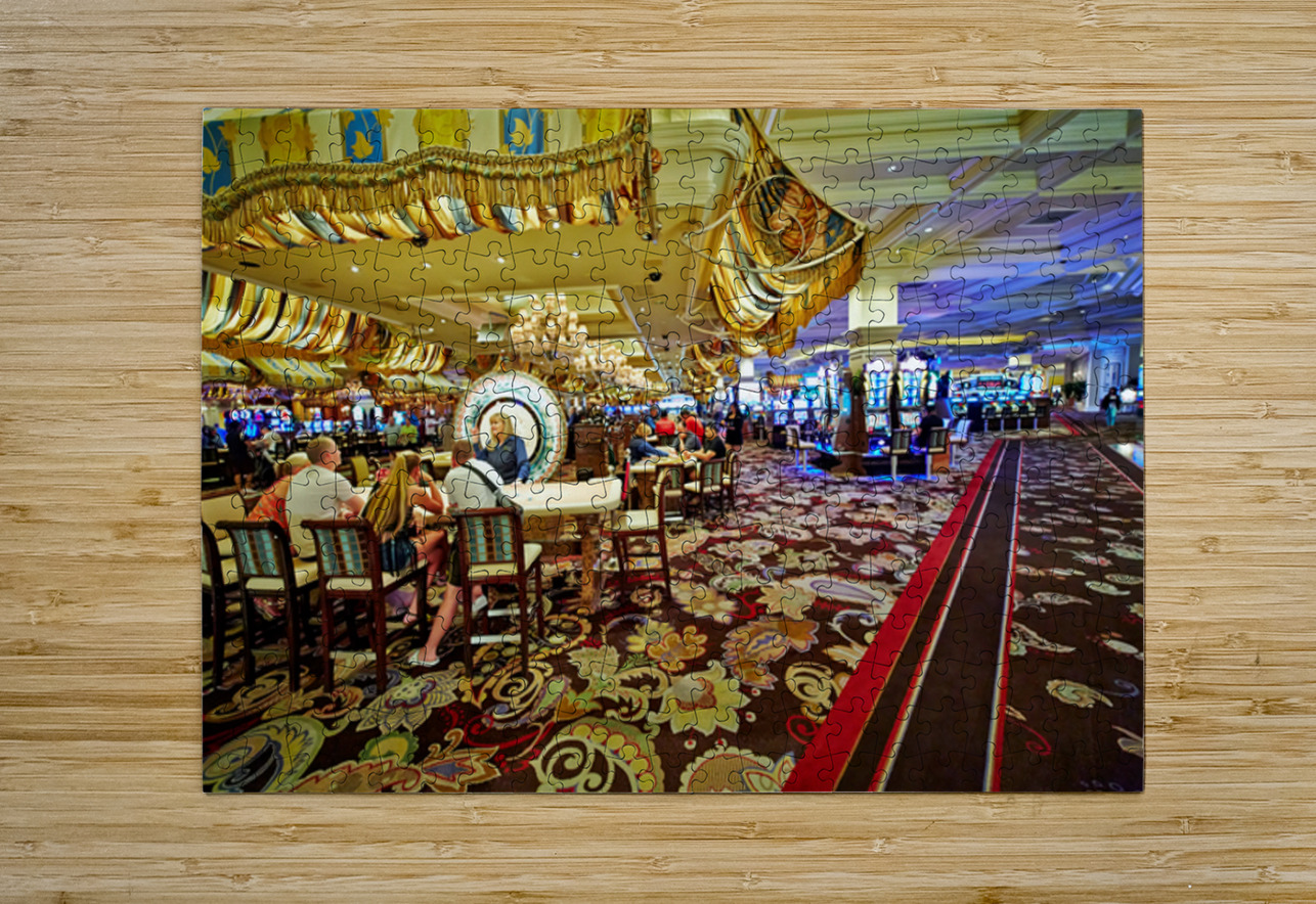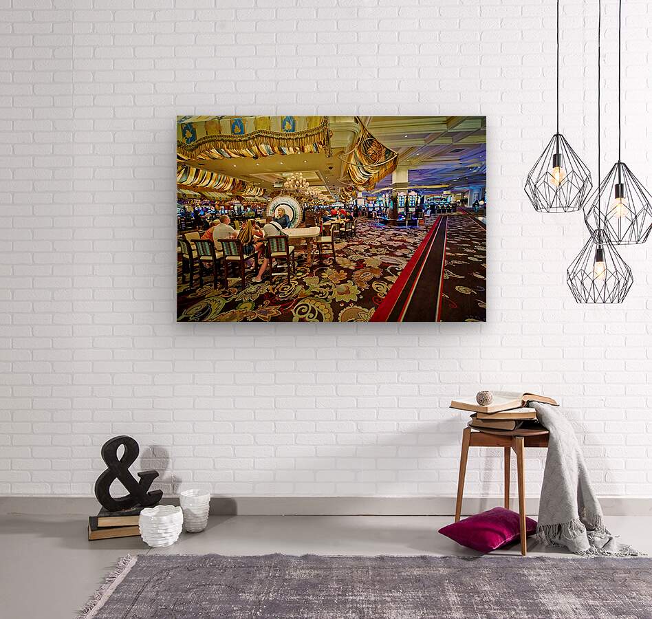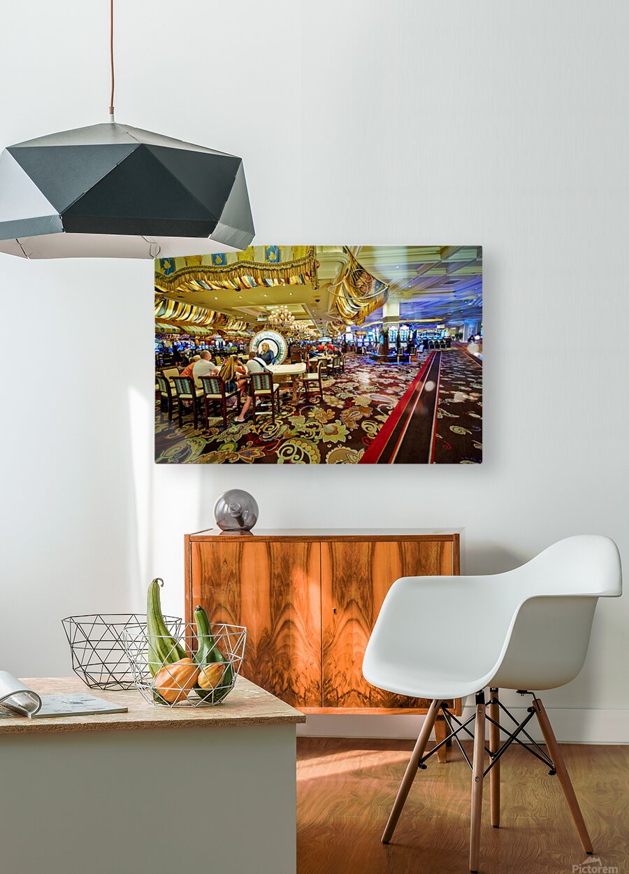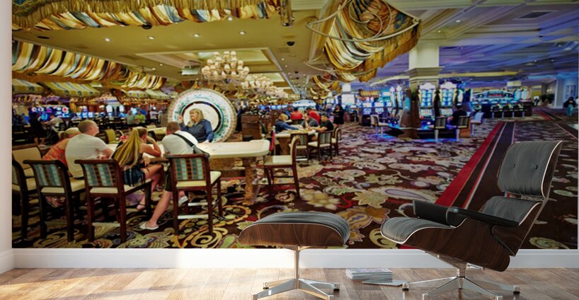 "Visitors play slot machines at Bellagio Casino in Las Vegas" in a framed print.
