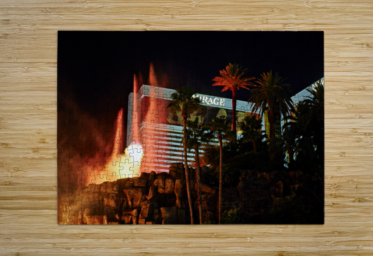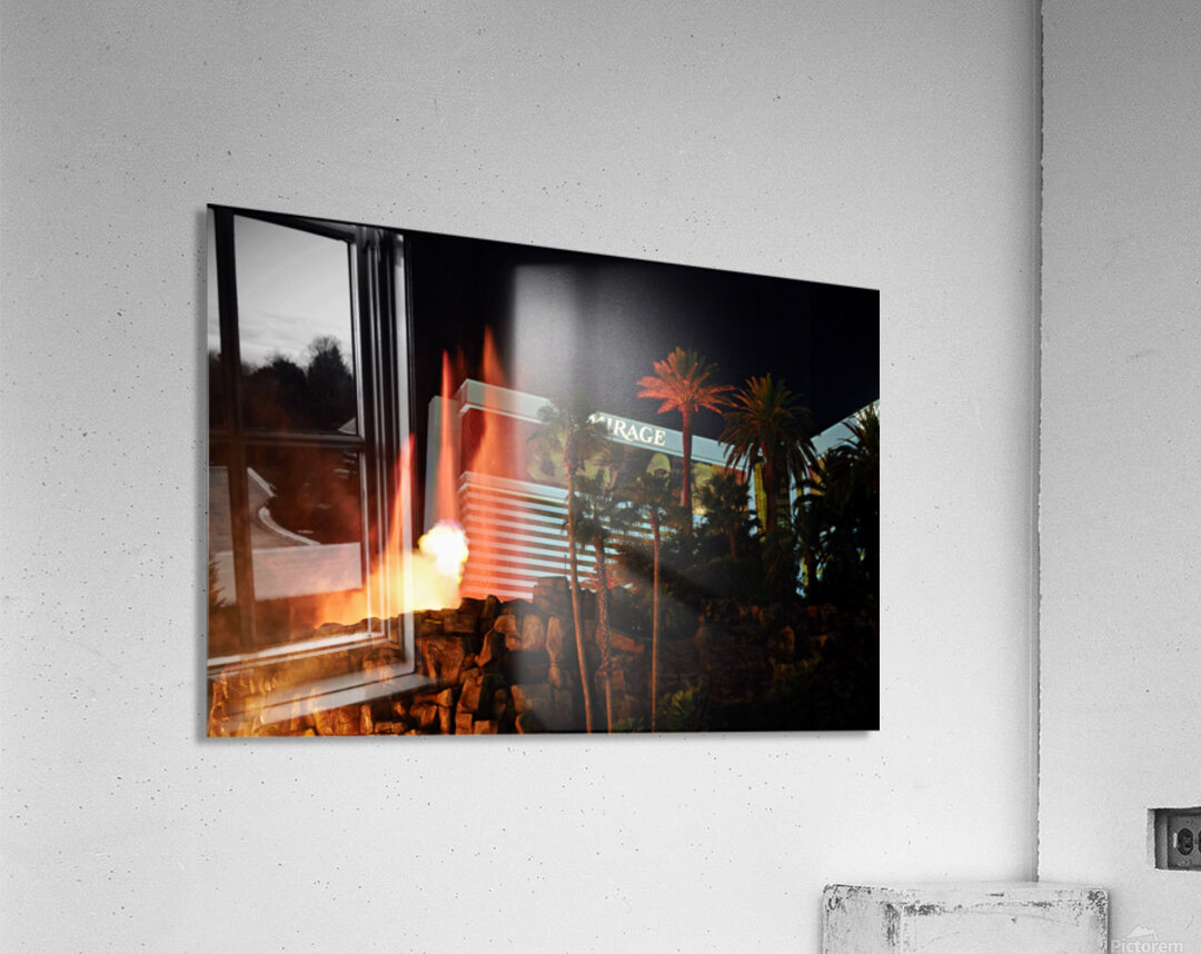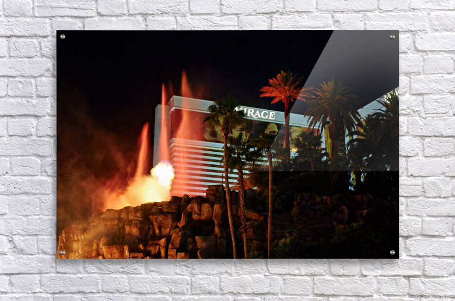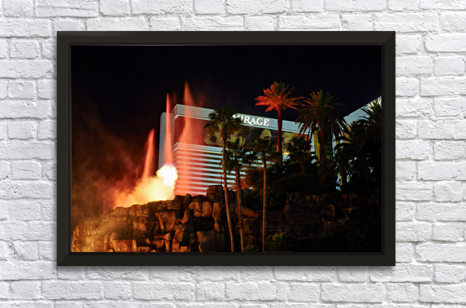 "Volcano eruption show at Mirage Hotel in Las Vegas" in a framed print.