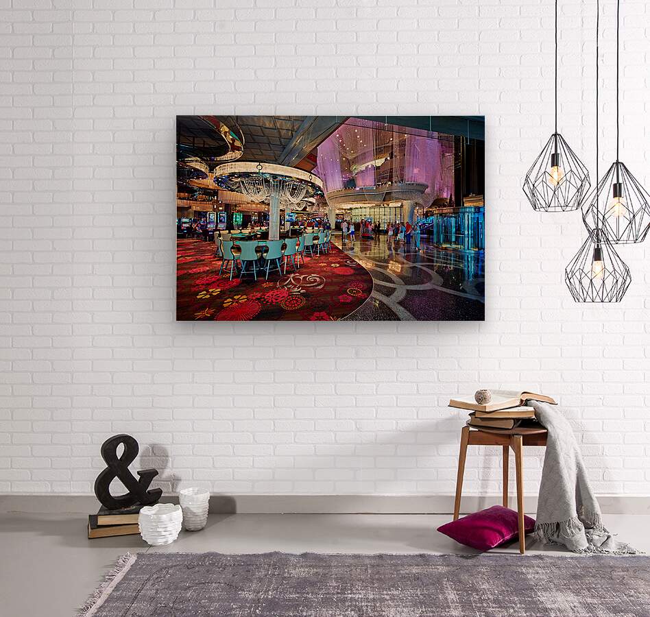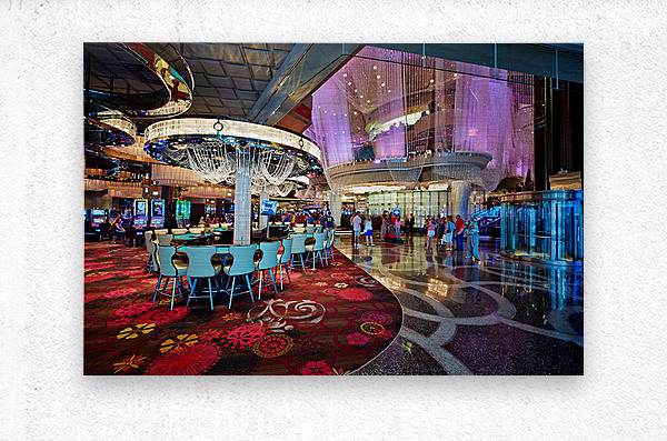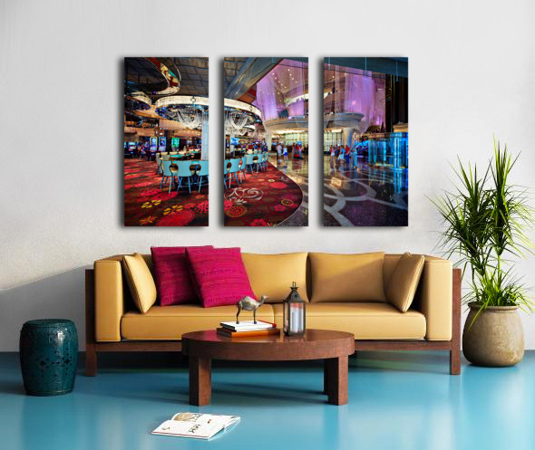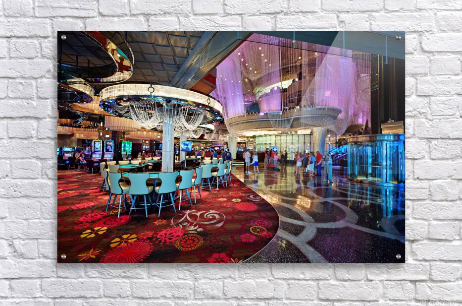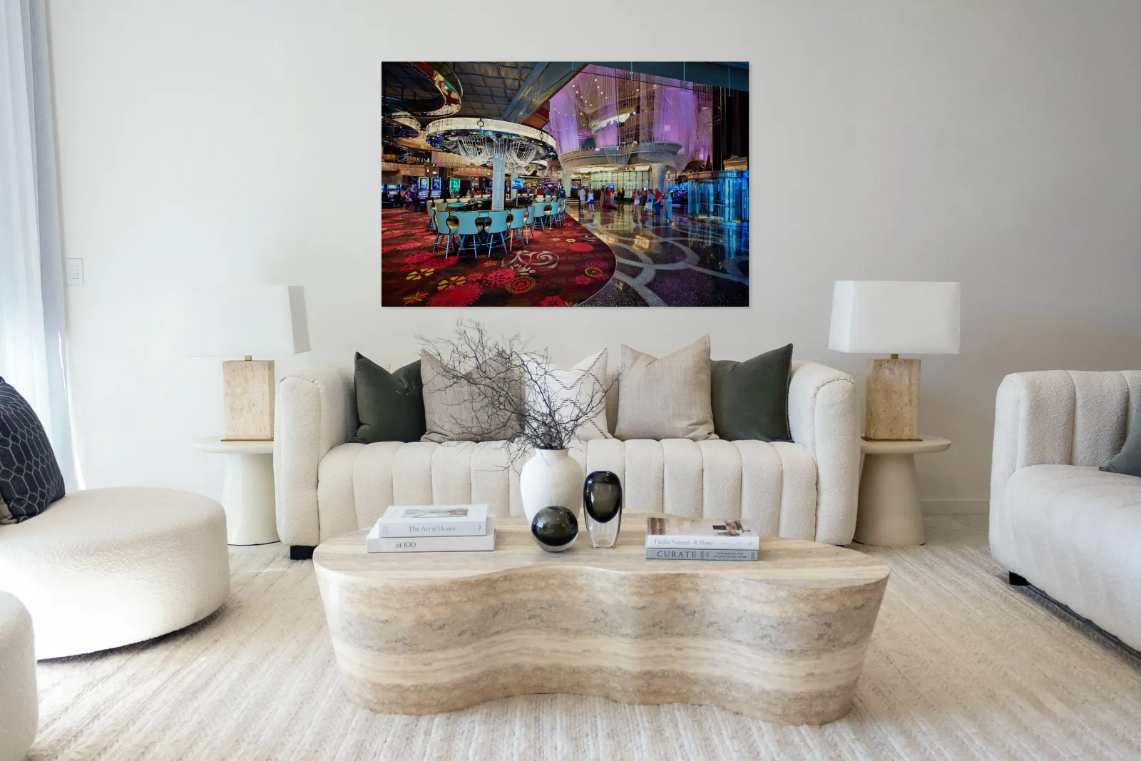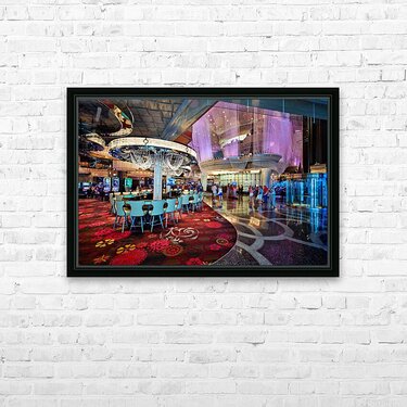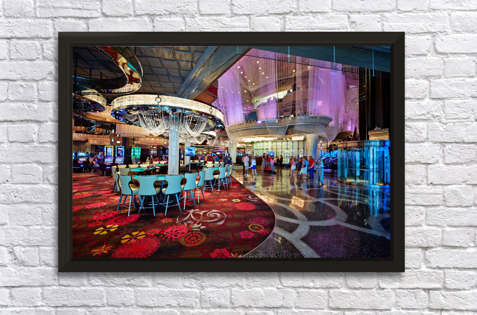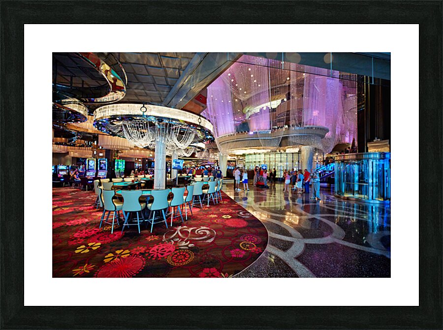 "Busy scene inside the Cosmopolitan Hotel Mall in Las Vegas" in a framed print.