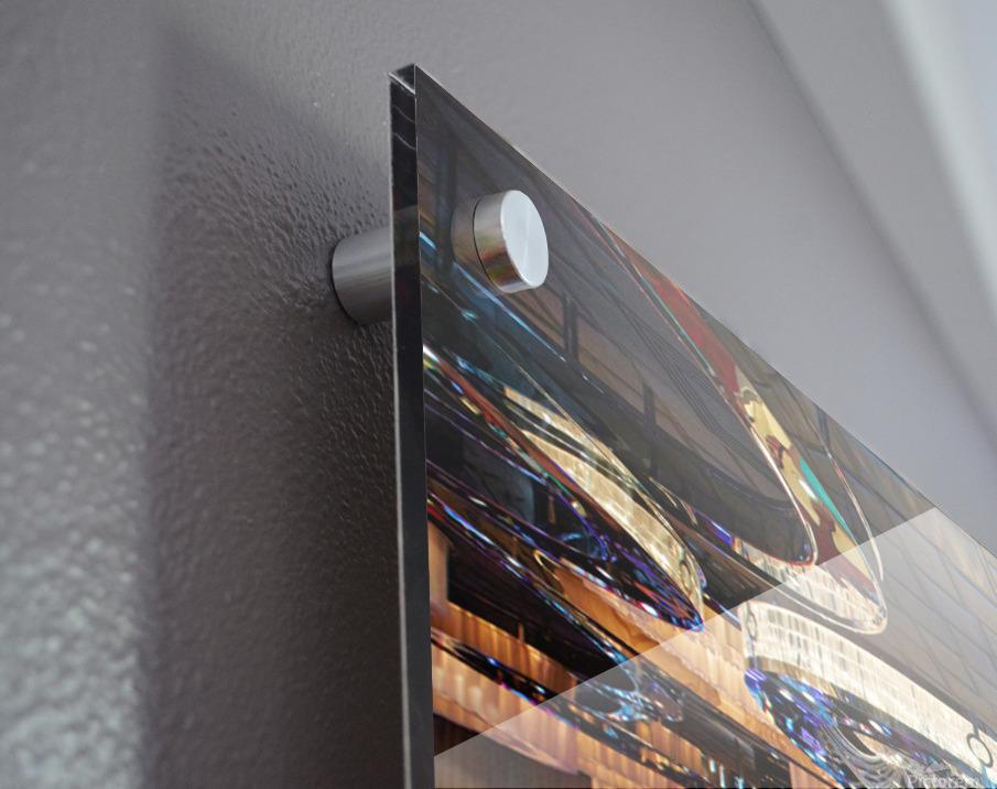Printed to the edge - Ready to hang - provided with 4 premium polished aluminum stand off ( wall screws and mounting hardware provided )
