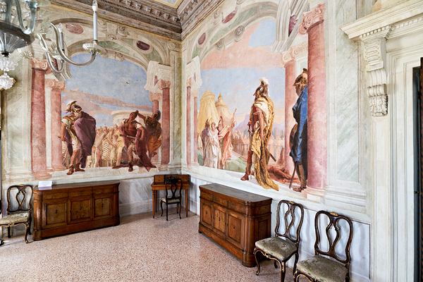 Frescoes by Giambattista and Giandomenico Tiepolo decorate walls inside the Villa Valmarana ai Nani in Vicenza Veneto Italy.